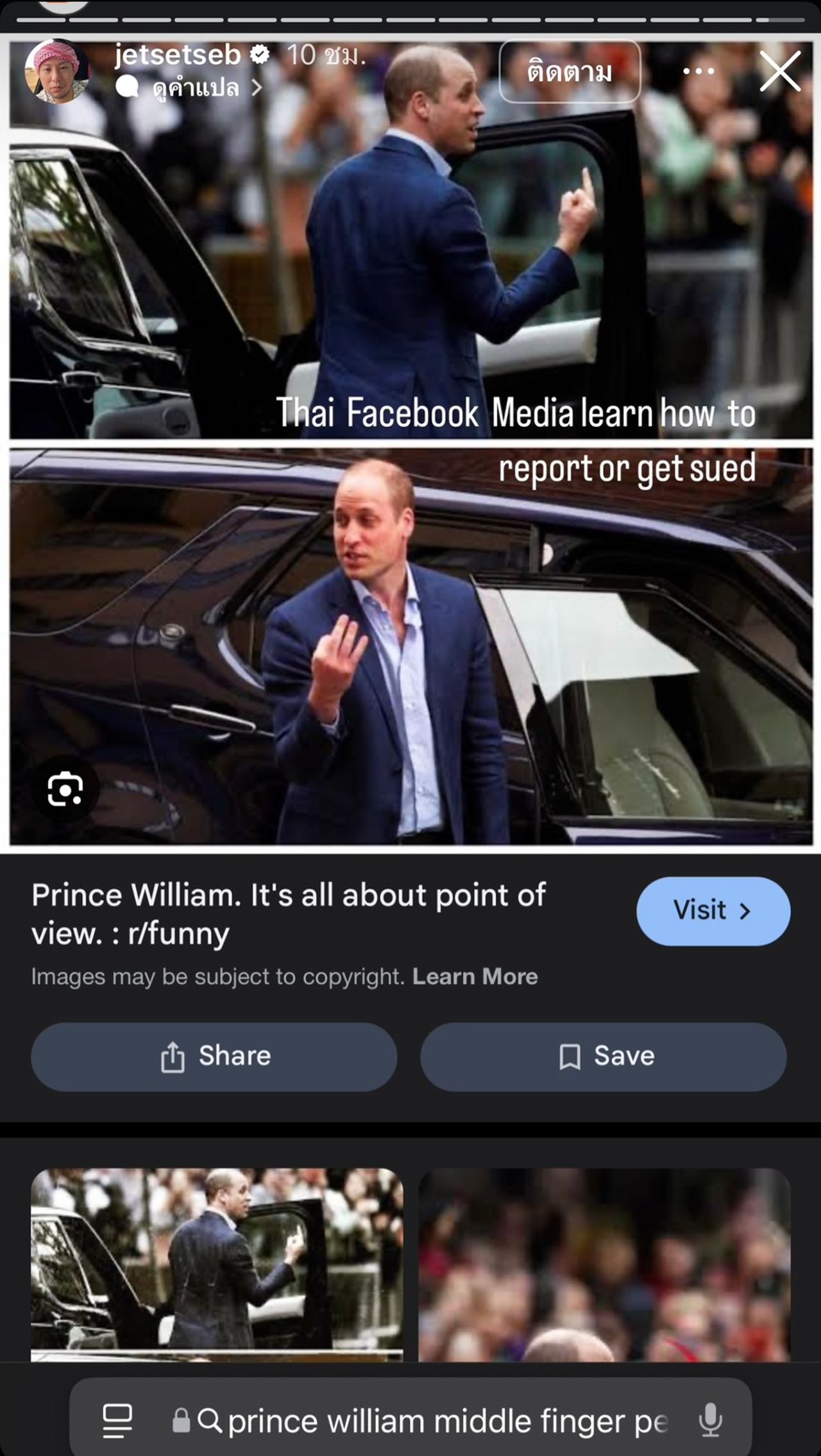 และโพสต์ที่ 6 เซบาสเตียน ได้ลงรูป Business Class ของสายการบิน China Airlines พร้อมแท็กเพจดังกล่าว ซึ่งมีข้อความว่า “Ever been on a plane? @อีซ้อขยี้ข่าว” ส่วนโพสต์สุดท้าย ลงรูปเป็นการเตือนว่า “Thai Facebook Media learn how to report or get sued.” โพสต์สุดท้ายเป็นเหมือนการเตือนเพจเรื่องการนำเสนอข่าว