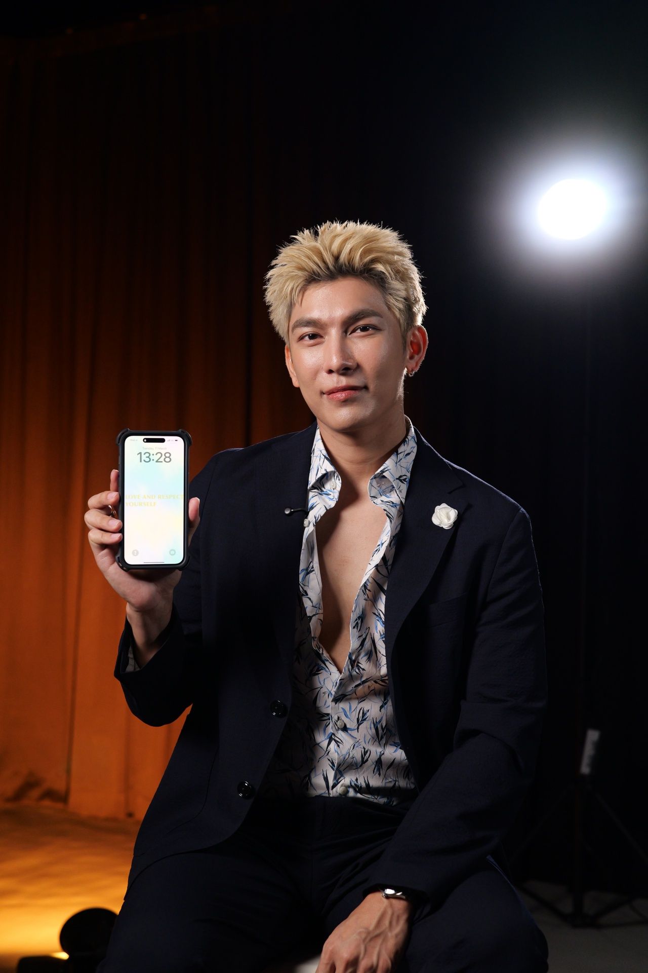 "อุ๊ย เลย เริ่มเลย นี่เลยครับผม อุ๊ย มีไลน์เข้ามา นี่ครับ ก็เป็นโควทเฉยๆ เลย เขียนว่า Love and Respect Your Self ครับ ผมรู้สึกว่าหลายๆ ครั้งครับ คือผมเป็นคนที่ค่อนข้างจิตใจดี แล้วบางทีจนตัวเรานี่แหละที่ซวยเองในหลายๆ เรื่อง เพราะผมรู้สึกว่าบางครั้งเราจิตใจดีครับ แล้วมันกลายเป็นว่าเรานี่แหละเป็นคนซวยเอง ก็เลยรู้สึกว่าอาจจะต้องเคารพตัวเองเพิ่มมากขึ้น และรักตัวเองเพิ่มมากขึ้น เพื่อเป็นการป้องกันในบางเรื่องของเรา ผมรู้สึกว่า ถ้าเรารักตัวเองมากพอเราจะสามารถรักคนอื่นได้อย่างเต็มที่ได้ ก็เลยรู้สึกว่า เรามาพิจารณาตัวเองก่อน ว่าเราอยู่ในสถานะนั้นหรือยังครับ