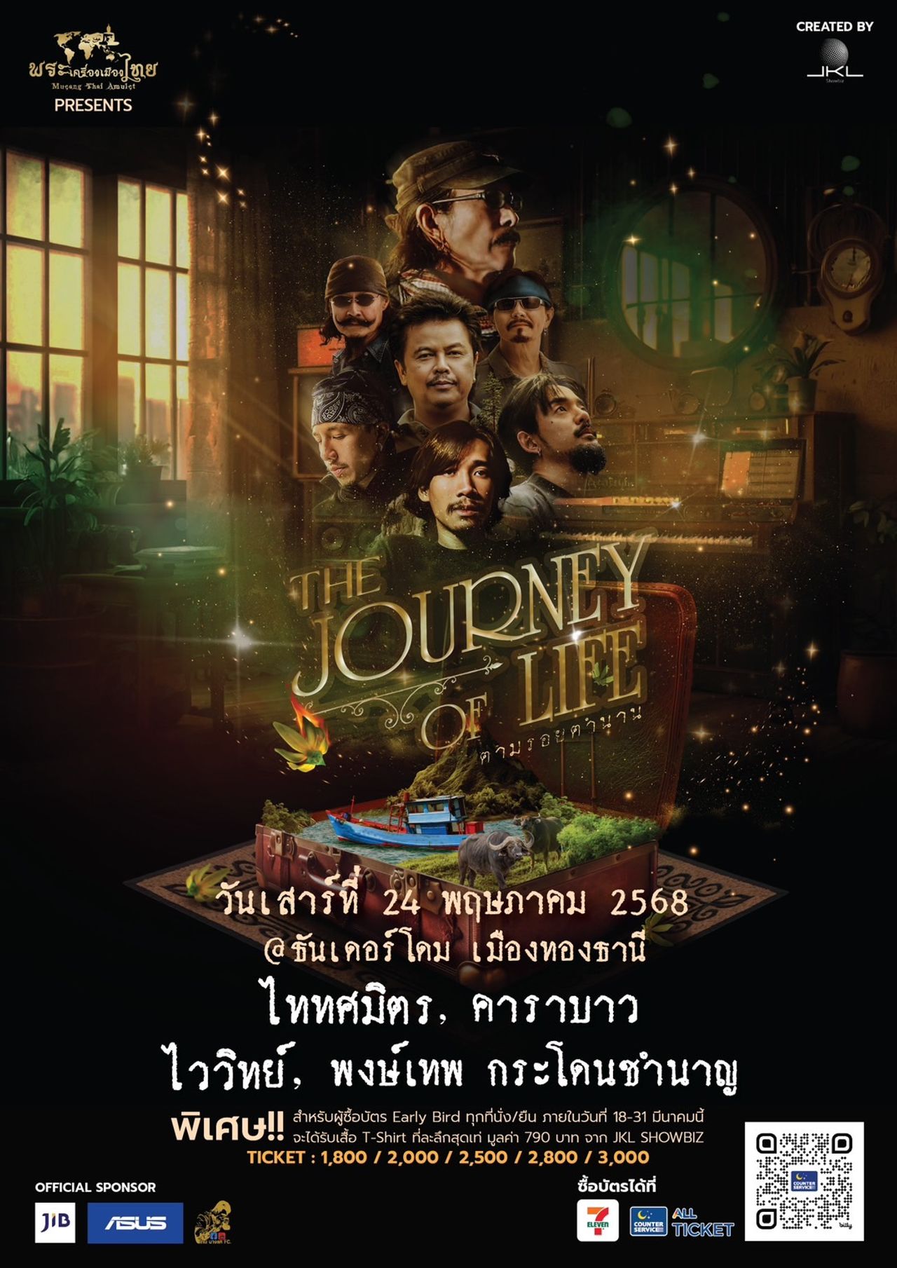 พระเครื่องเมืองไทย Presents ภูมิใจเสนอ THE JOURNEY OF LIFE CONCERT "ตามรอยตำนาน" คอนเสิร์ตระดับงานช้างที่แฟนเพลงเพื่อชีวิตจะต้องร่วมกันจารึกไว้ในประวัติศาสตร์ในวงการ เมื่อสองศิลปินเพื่อชีวิตระดับตำนานอย่าง คาราบาว และ พงษ์เทพ กระโดนชำนาญ ต้องประสานมือกันชนสองวงเพื่อชีวิตรุ่นใหม่ไฟแรงที่ใส่ความมันส์กันแบบไม่ยั้งอย่าง ไววิทย์ และ ไททศมิตร ที่บอกได้คำเดียวว่าจะทำให้เวทีระอุด้วยความมันส์ระดับลุกเป็นไฟ