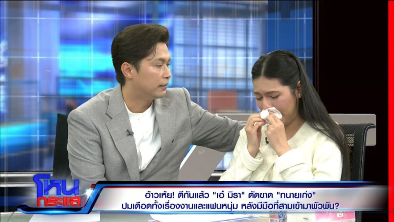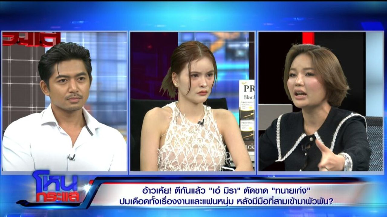 เมื่อวันศุกร์ที่ผ่านมา คุณเองเปิดคลิปนึงมา สองคนมีปัญหากันหลายเรื่อง เมื่อก่อนเคยรักกันมาก่อน แต่จากงานล่าสุด ทนายเก่งจ้างอั้ม ที่เคยออกโหนกระแส ตอนนั้นทนายเก่งให้ไวน์เป็นตากล้องไปถ่าย แต่มีภาพไวน์เข้าอยู่ในเฟรม เปิดเพลงเหมือนคนรักกัน จีบกัน ทำให้เอ๋ มิรา รู้สึกว่าไม่สมควรหรือเปล่า แต่เอ๋รู้สึกว่าทนายเก่งควรแจ้งว่าเป็นการทำงาน ไม่เกี่ยวข้องอะไรกัน ทำไมไม่มีการแจ้ง หนำซ้ำจะมีการถ่ายภาค 2 อีก เขามองไม่ควร ทนายเก่งบอกว่าไม่ใช่ เพราะจริงๆ แล้วคนที่ไปลง ไม่ใช่ฝั่งอั้ม มันคือฝั่งของไวน์ มีภาพมาให้เห็นว่าไวน์กดเพลงส่งอะไรส่งด้วย ทำไมไม่บอกให้ไวน์พูดเอง ว่ายังรักกับเอ๋ มิรา จากนั้นมีการสาบานกัน ตอนนั้นทนายเก่งถามว่าสาบานมั้ย คุณไวน์สาบานมั้ย?