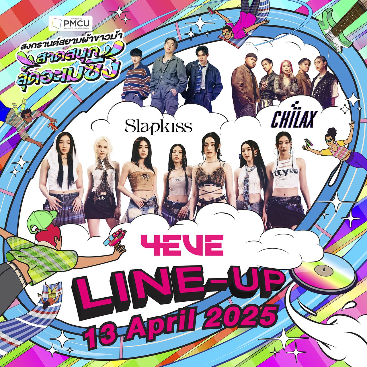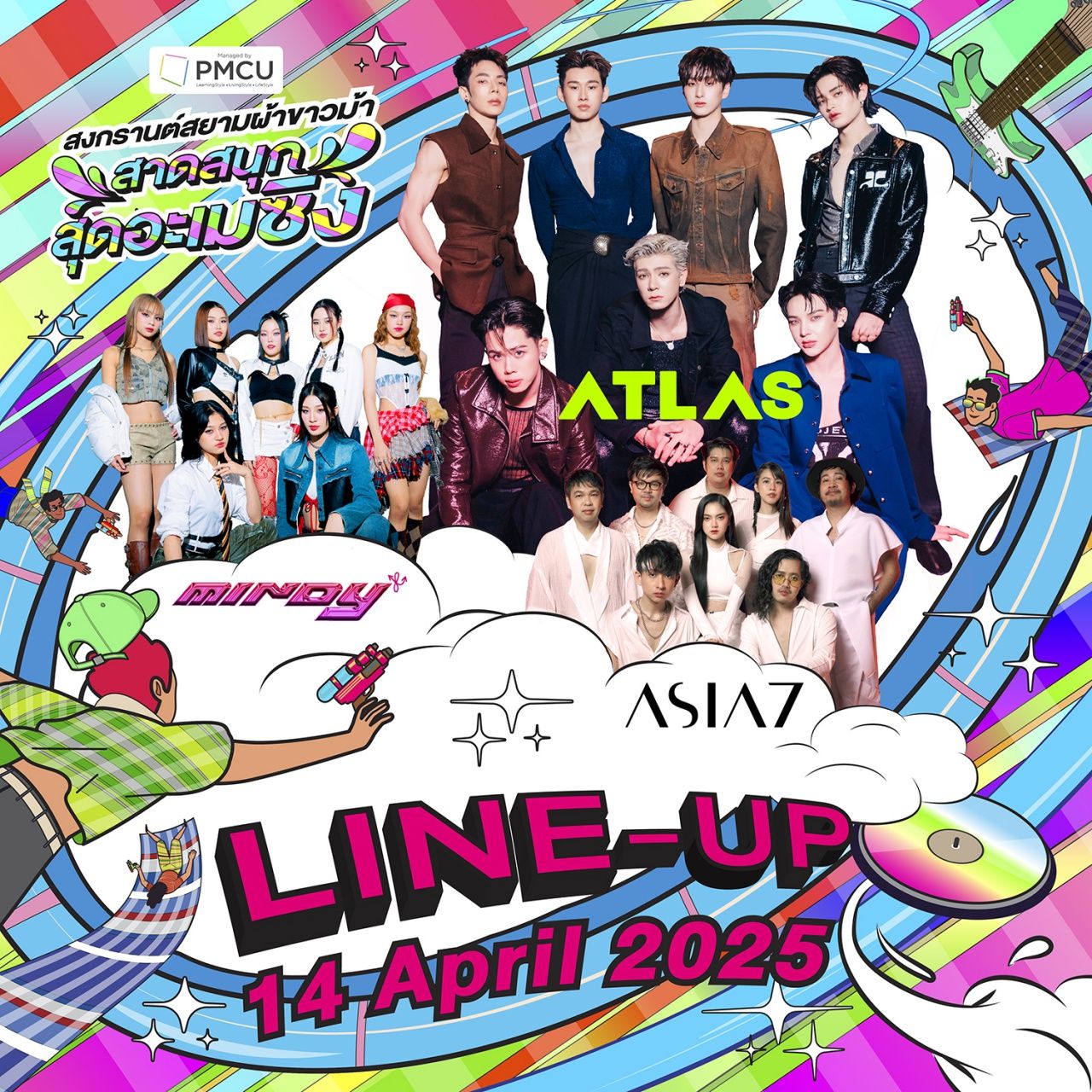 ภายในงานมีโซนสนุกๆ ในรูปแบบสวนน้ำ นอกจากนี้ยังมีเหล่าศิลปินนักร้องชื่อดังมามอบความสนุกภายในงาน พบกับ 4EVE / CHILAX / Slapkiss / ATLAS / เอเชีย7 / MINDY / ไมยราพ / เอิ๊ต ภัทรวี / FLI:P x Project M.O.N. / เบนซ์ ข้าวขวัญ มีการแสดงความสามารถทางด้านดนตรีจากน้องๆ นักเรียน นิสิต , นักศึกษา กับ ดนตรีหลากหลายสไตล์ ของคนไทย ไม่ว่าจะเป็นดนตรี 3 ช่า , หมอลำ , ลูกทุ่ง , ลูกกรุง , ป็อป , ร็อค โดยมีวงดนตรีเข้าร่วมมากมาย เช่น วงดนตรีชื่อดังจาก PMCU รวมถึง วงดนตรีที่เข้าประกวดในรายการ THAILAND BAND WARS จากช่อง WorkPoint23 งานสงกรานต์สยามผ้าขาวม้า สาดสนุก สุดอะเมซิ่ง เริ่มตั้งแต่วันที่ 13 -14 -15 เมษายน 68 เริ่ม11.00 น. – 22.00 น. ณ สยามสแควร์ งานนี้เที่ยวฟรีตลอดงาน!!