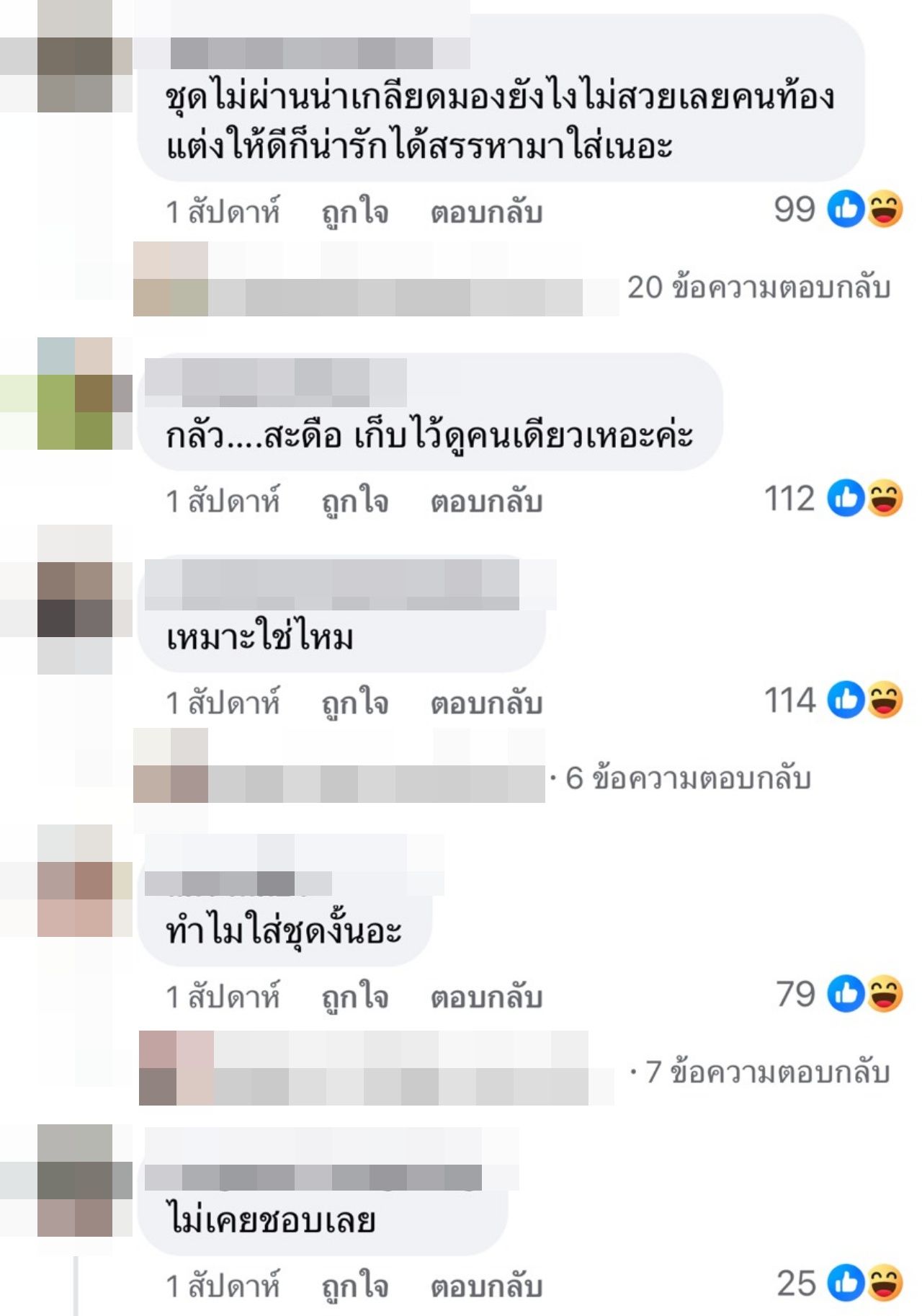 ล่าสุด แม่ปุ้มปุ้ย ได้พาลูกชาย น้องไซอัลบลู ไปออกงานอีเวนต์ ซึ่งแม่ปุ้มปุ้ยใส่ชุดเดรสสีขาวที่มีส่วนเว้าช่วงท้อง เผยให้เห็นท้องโต แต่งานนี้กลับเจอคนเข้ามาคอมเมนต์วิจารณ์ชุดที่ใส่กันจำนวนมาก ทั้งบอกว่า ชุดไม่ผ่าน น่าเกลียด มองยังไงไม่สวยเลย คนท้องแต่งให้ดีก็น่ารักได้ สรรหามาใส่เนอะ, เหมาะใช่ไหม, แต่งตัวอะไร คนท้องไม่ควร, สมัยนี้คนท้องเขาต้องใส่ชุดขนาดนี้เลยเหรอ แปลกไปทุกวัน, ทำไมไม่ใส่ชุดปิดท้อง เข้าไม่ถึงแฟชั่นนี้จริง, กลัว...สะดือ เก็บไว้ดูคนเดียวเหอะค่ะ