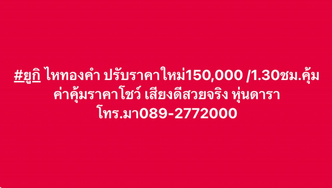 "#ยูกิ ไหทองคำ ปรับราคาใหม่ 150,000 /1.30 ชม. คุ้มค่าคุ้มราคาโชว์ เสียงดีสวยจริง หุ่นดารา โทร.มา089-2772000" งานนี้ทำเอาแฟนๆ เข้ามาคอมเมนต์แสดงความยินดีกับยูกิที่ได้ปรับเรตค่าตัวในการรับงาน เพราะการปรับค่าจ้างก็เหมือนเป็นตัวชี้วัดถึงความฮอตและความสามารถของนักร้องได้เป็นอย่างดี