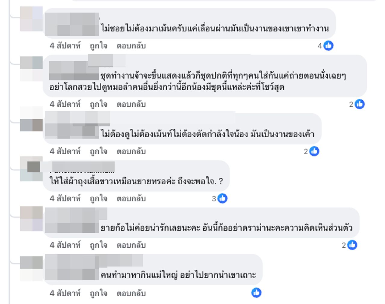 งานนี้ชาวเน็ตคนอื่นๆ ก็ได้มาคอมเมนต์ตอบกลับแทนยูกิว่า ยายแก่แล้วยังคิดแบบเก่าเนาะ, แก่แล้วสมัยนี้ไม่เหมือนเก่านะยาย, เปิดโลกเปิดหูเปิดตาบ้างนะครับนี่ชุดน้องใส่ทำงานแล้วอีกอย่างน้องเขาก็ 18 แล้ว เข้าเมืองไปเดินตลาดเดินห้างดูมั่งว่าเด็กเดี๋ยวนี้แต่งตัวไปเที่ยวกันขนาดไหน อ้อ แล้วความคิดส่วนตัวก็ควรคิดคนเดียวในใจนี่คุณคิดดังไปหรือเปล่า, ชุดทํางานจ้าจะขึ้นแสดงแล้วก็ชุดปกติที่ทุกๆ คนใส่กันแค่ถ่ายตอนนั่งเฉยๆ อย่าโลกสวยไปดูหมอลําคนอื่นยิ่งกว่านี้อีก น้องมีชุดนี้แหล่ะค่ะที่โชว์สุด, ไม่ต้องดูไม่ต้องเม้นต์ ไม่ต้องตัดกำลังใจน้อง มันเป็นงานของเขา"