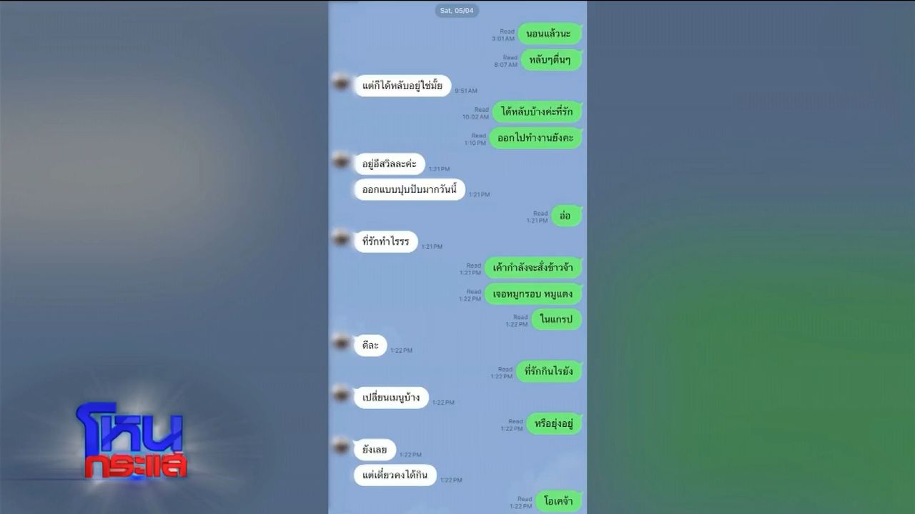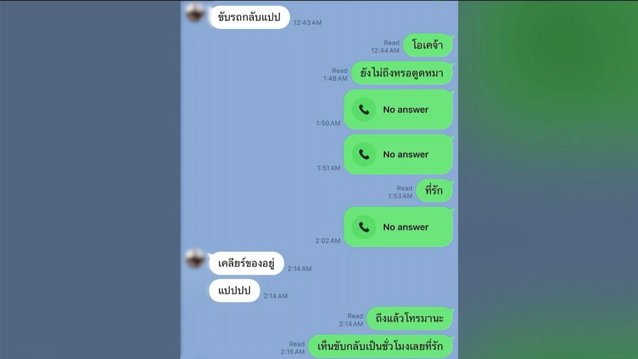 จากนั้นในแชตฝ่ายหญิงบอกว่าขับรถกลับ และเพชรตอบไปว่าโอเคจ้า ก่อนจะส่งข้อความไปถามว่ายังไม่ถึงเหรอตูดหมา ก่อนจะโทรอีกแต่ไม่รับ ก่อนที่ฝ่ายหญิงจะส่งข้อความบอกว่าเคลียร์ของแป๊บ ก่อนที่เพชรจะส่งข้อความบอกว่าถึงแล้วโทรมานะ เห็นขับกลับเป็นชั่วโมงเลยที่รัก ตอนนั้นที่โทรไป 01.50 น. จริงๆ ตนมาถึงคอนโดแล้ว แต่เขาบอกว่าเคลียร์ของอยู่ แต่ตอนนั้นตนไม่ได้บอกเขาว่าอยู่ที่หน้าคอนโดแล้ว ตอนนั้นใจหล่นไปถึงตาตุ่ม ซึ่งคอนโดนี้มีคีย์การ์ดอันเดียว ถ้ามีใครจริงๆ ยังไงคนที่อยู่ในห้องจะต้องลงมาส่ง