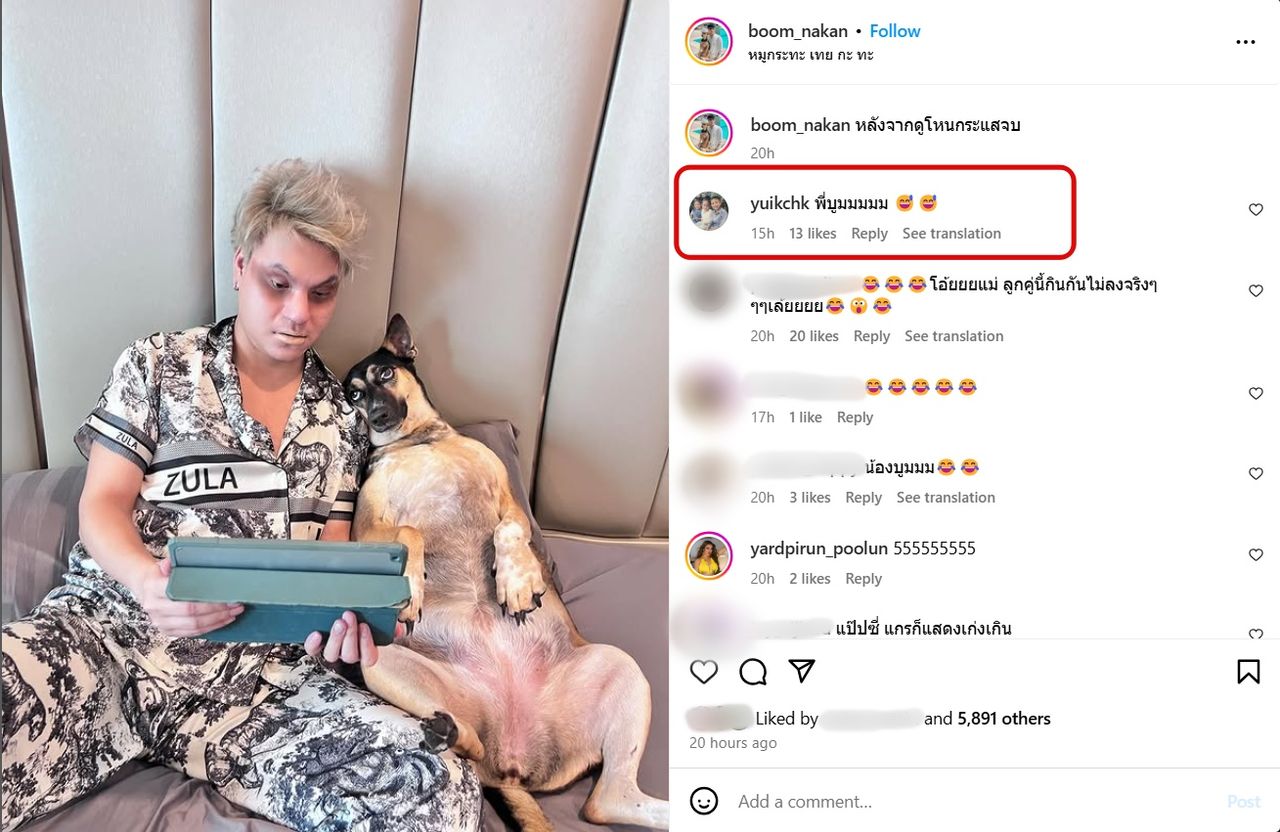งานนี้นอกจากจะมีแฟนๆ เข้ามาคอมเมนต์แซวและส่งอีโมจิขำกันยกใหญ่แล้ว ด้าน คุณแม่ยุ้ย กชกร คุณแม่ของณิชา ก็เข้ามาคอมเมนต์สั้นๆ ว่า "พี่บูมมมมม" และใส่อีโมจิรูปเหงื่อตกด้วยความขำด้วย
