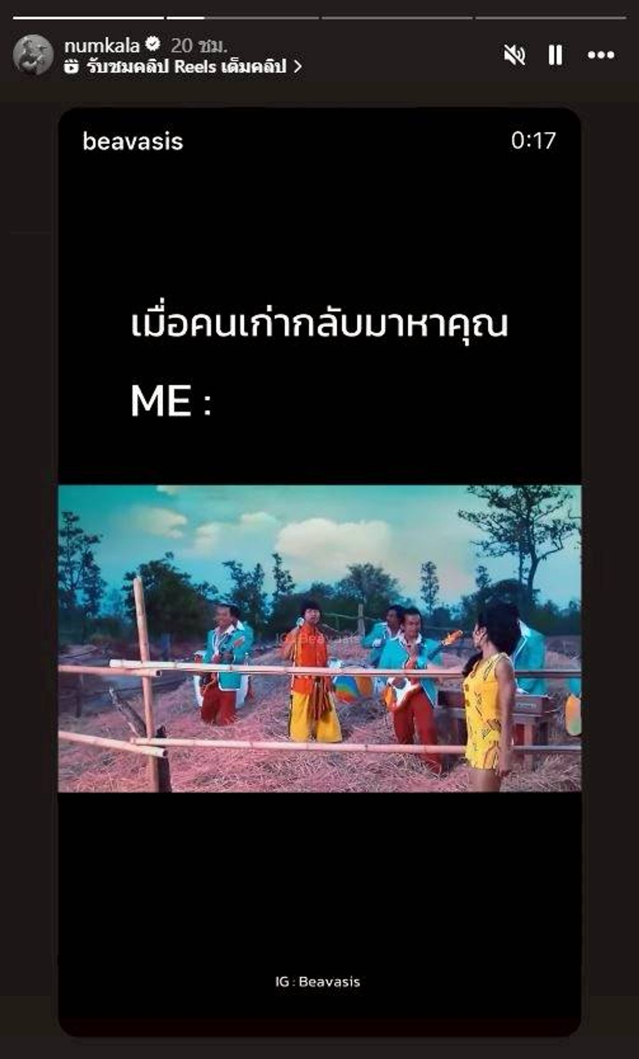 นอกจากนี้ หนุ่ม กะลา ยังโพสต์คลิปเด็ดเมื่อคนเก่ากลับมาหาลงในไอจีสตอรี่ด้วย ซึ่งคลิปดังกล่าวได้ตอบกลับแฟนเก่ากลับมาหาด้วยเพลง “กลับมาทำไม” เพลงประกอบภาพยนตร์เรื่อง “แหยมยโสธร” ซึ่งมีเนื้อเพลงที่ว่า “ไปหาข้างหน้าดีกว่าคนสวย หาคนร่ำรวยก็อาจจะมี พี่นี้ไม่มีความหมาย ขืนอยู่ไปจะเป็นของฟรี ขอบใจสุดซึ้ง ที่คิดถึงพี่ ขอให้โชคดี โทษทีนะพี่ไม่ว่าง”