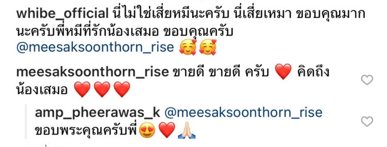 "นี่ไม่ใช่เสี่ยหมีนะครับ นี่เสี่ยเหมา ขอบคุณมากนะครับพี่หมีที่รักน้องเสมอ ขอบคุณครับ" ด้าน พี่หมี ก็ได้เข้ามาคอมเมนต์ตอบกลับว่า "ขายดี ขายดี ครับ คิดถึงน้องเสมอ"