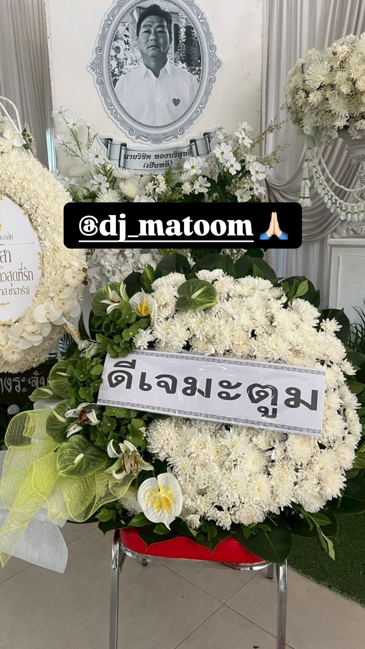 และล่าสุด ดิว อริสรา ก็ได้เคลื่อนไหวผ่านทางโซเชียลอีกครั้ง ด้วยการอัปสตอรี่ไอจีพวงหรีดที่เพื่อนสนิทอย่าง กุ๊บกิ๊บ สุมนทิพย์ และดีเจมะตูม เตชินท์ รวมไปถึงพี่คนสนิทอย่าง ไผ่ ลิกค์ และ หวานเจี๊ยบ อดีตผู้จัดการส่วนตัว ส่งมาร่วมแสดงความเสียใจกับการจากไปของคุณพ่อวิชิต