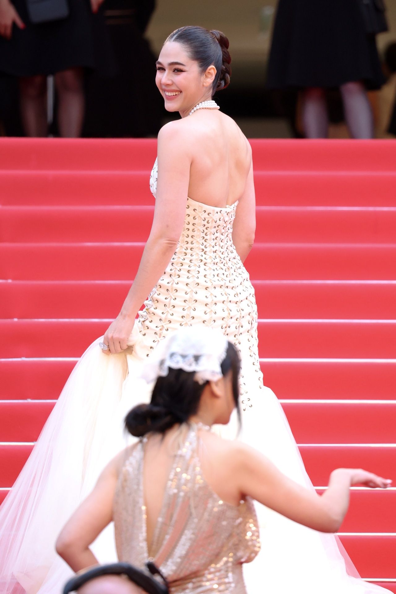 และในวันนี้เป็นวันที่ 3 แล้วที่ ชมพู่ อารยา เฉิดฉายบนพรมแดงเทศกาลหนังเมืองคานส์ 2025 โดยในครั้งนี้สวยหวานสะกดใจสุดๆ ด้วยชุดเดรสจากแบรนด์ SIRIVANNAVARI โดยท่อนบนเป็นคอร์เซตสีขาวงาช้าง (Ivory White) ที่ถูกร้อยเรียงผ่านตาไก่โลหะตั้งแต่ช่วงอกมาจนถึงช่วงสะโพก ประกอบกับท่อนล่างที่เป็นกระโปรงยาวพลิ้วไหวและทิ้งตัวได้สวยงามสง่า เสริมความสวยปังด้วยเครื่องประดับไฮจิวเวลรี่จาก Boucheron พร้อมทั้งเนรมิตความสวยบนใบหน้าด้วยเมกอัพจาก L‘Oreal Paris