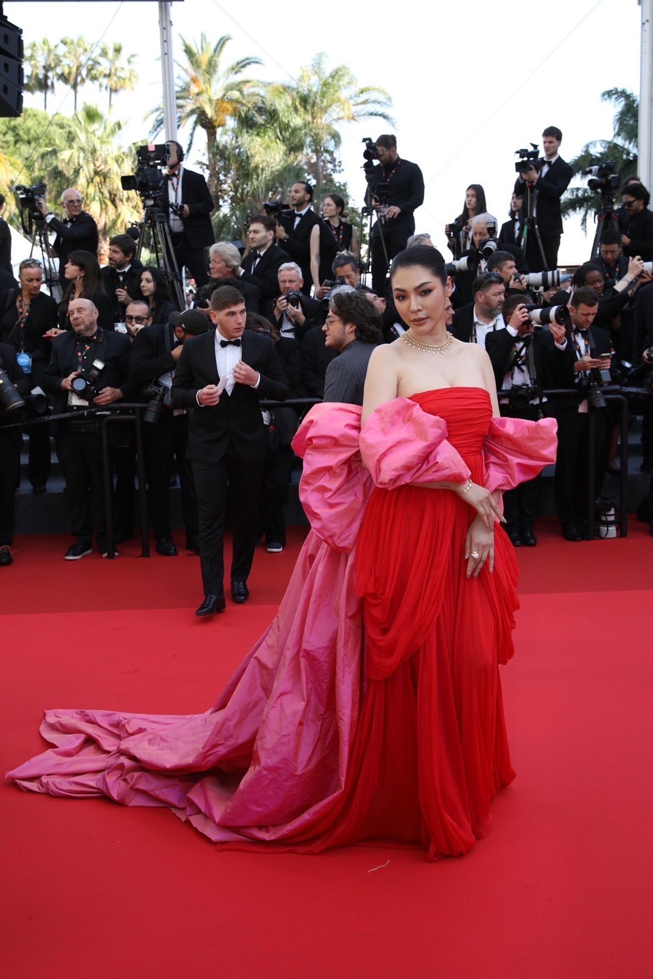 ผสมผสานกับชุดโอต์กูตูร์แบรนด์ดังจาก Giambattista Valli เกาะอกสีแดงและลูกเล่นสีชมพูที่ช่วงแขนลากยาวอลังการลงตัวสุดๆ ที่รุ่มรวยไปด้วยความอ่อนหวาน สุขุม และหรูหราอย่างมีระดับ บนพรมแดงรอบกาล่าเปิดตัวภาพยนตร์ “The History of Sound” ภาพยนตร์รักโรแมนติกย้อนยุคของอเมริกันในช่วงสงครามโลกผลงานกำกับโดย "Oliver Hermanus" นำแสดงโดย "Josh O’Connor" และ "Paul Mescal"