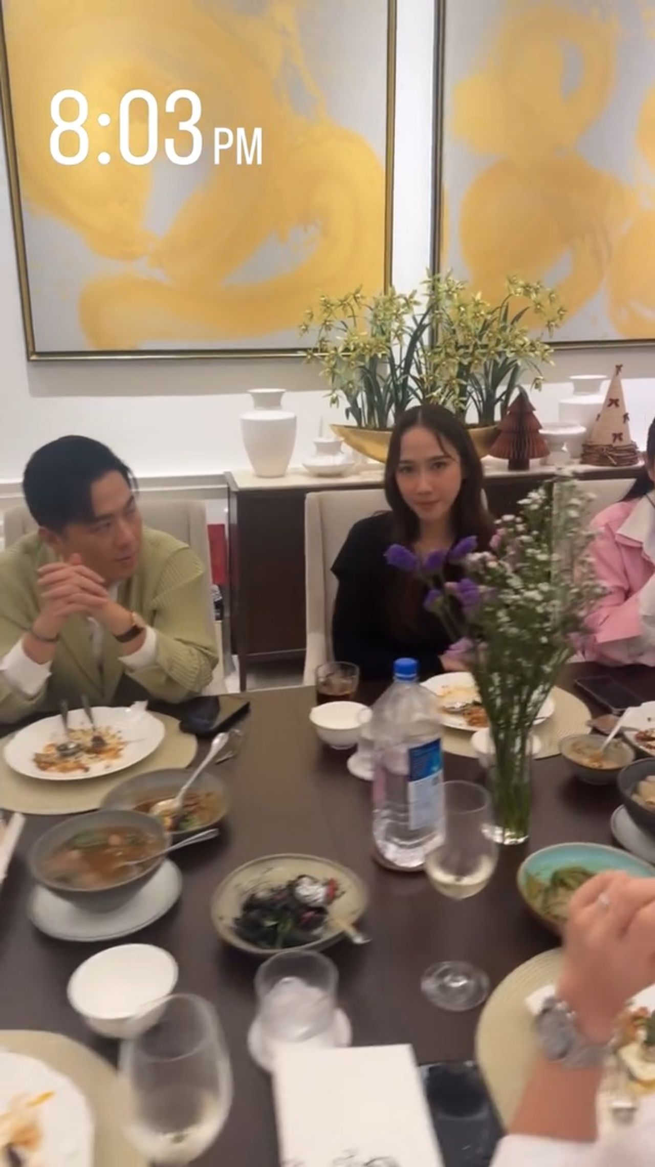 ส่วนบรรยากาศอบอุ่นมากๆ เพราะเป็นการรวมตัวดินเนอร์ด้วยกันในกลุ่มคนสนิทของเมย์ อาทิ เมย์ ปทิดา, แป้ง อรจิรา, วุ้นเส้น วิริฒิพา, เอ ศุภชัย, กระแต ศุภักษร, หนิง ปณิตา, เปิ้ล ภารดี, กระแต ศุภักษร, หมอช้าง ทศพร ก่อนจะเป่าเค้กแบบเรียบง่าย