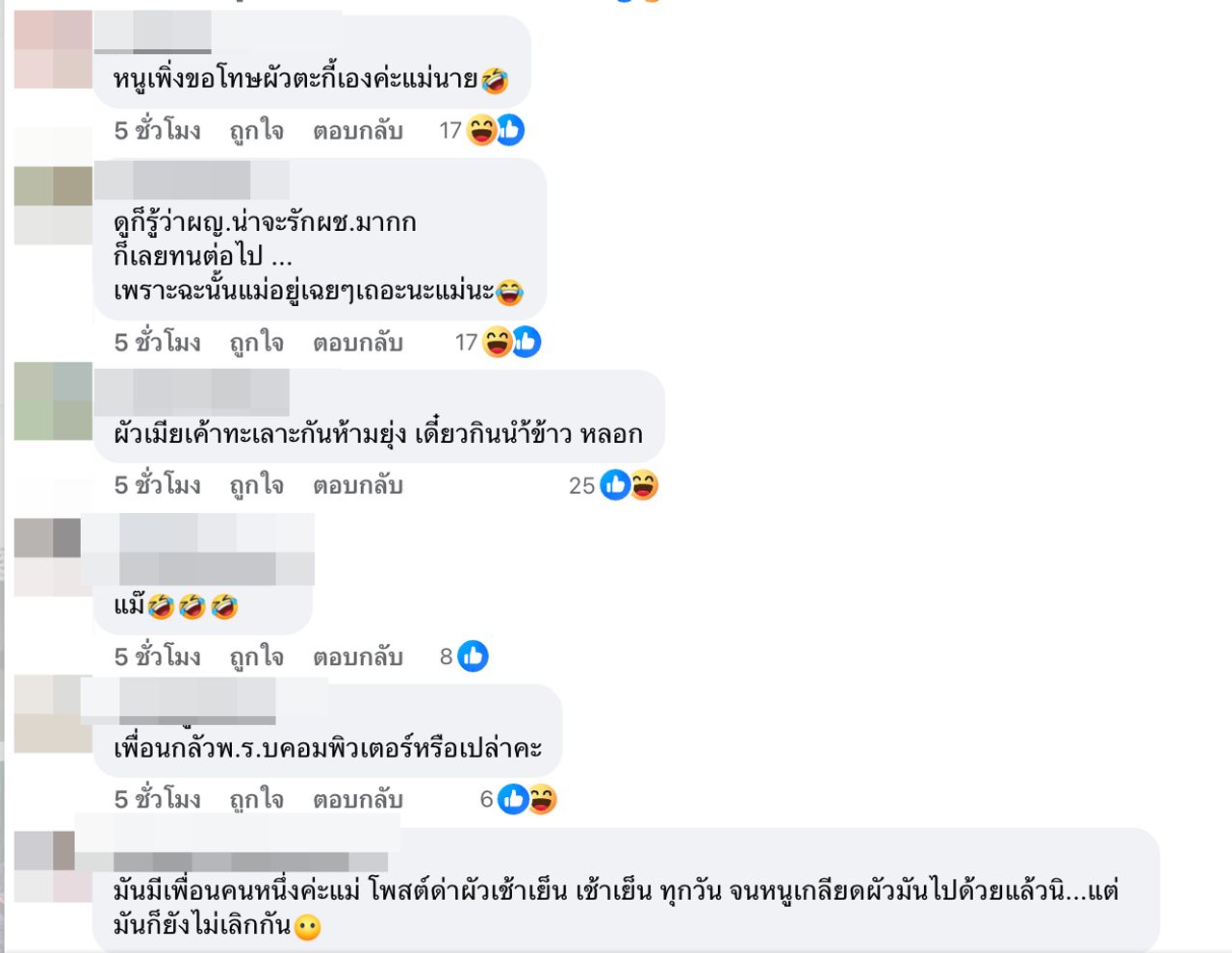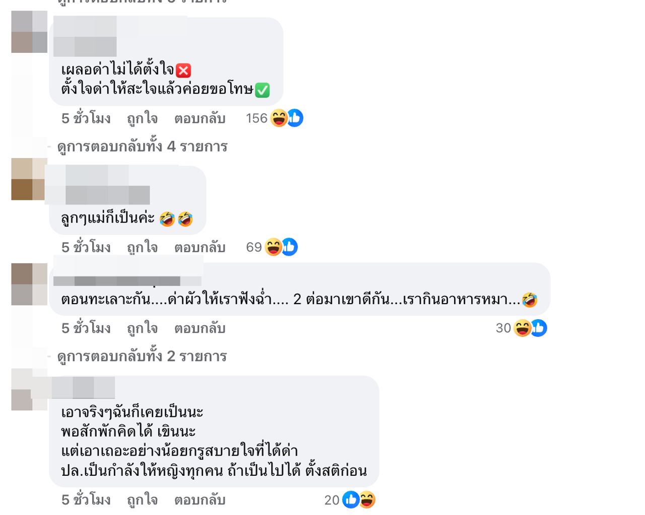 งานนี้ถูกใจชาวเน็ตแบบสุดๆ เข้ามาคอมเมนต์แสดงความคิดเห็นกันแบบรัวๆ ว่า "ตอนทะเลาะกัน....ด่าผัวให้เราฟังฉ่ำ.... 2 วันต่อมาเขาดีกัน...เรากินอาหารหมา..., เมื่อก่อนนู๋ก้อเป็นค่ะแม่ แต่ตอนนี้เลิกพฤติกรรมนั้นล่ะ เพราะไม่มีผัว, เอาจริงๆ ฉันก็เคยเป็นนะ พอสักพักคิดได้ เขินนะ แต่เอาเถอะอย่างน้อยกรูสบายใจที่ได้ด่า ปล.เป็นกำลังใจให้หญิงทุกคน ถ้าเป็นไปได้ ตั้งสติก่อน, หนูเพิ่งขอโทษผัวตะกี้เองค่ะแม่นาย"