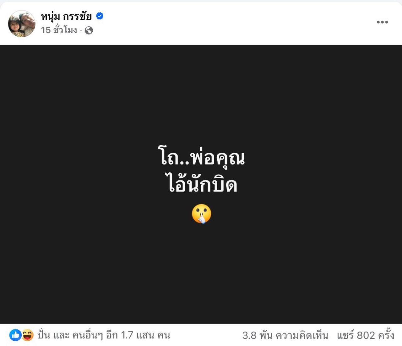 หลังจากที่ หนุ่ม กรรชัย โพสต์ข้อความในเฟซบุ๊กของตัวเอง ซึ่งมีข้อความว่า "โถ...พ่อคุณ ไอ้นักบิด" ทำเอาหลายๆ คนอยากรู้ว่าเจ้าตัวนั้นหมายถึงใครหรือไม่ ล่าสุดในรายการ ปูเสื่อรอ ทางช่องไทยรัฐทีวี ช่อง 32 ที่ออกอากาศทุกวันจันทร์-ศุกร์ เวลา 10.00-11.00 น. ก็ได้ต่อสายตรงถึงกรรชัย เพื่อสอบถามถึงประเด็นดังกล่าว รวมไปถึงประเด็นที่ถูกไฮโซคนหนึ่งโยงว่าพิธีกรคนดังถูกร้านขายนาฬิกาแบรนด์เนมปลอมสลิปว่า