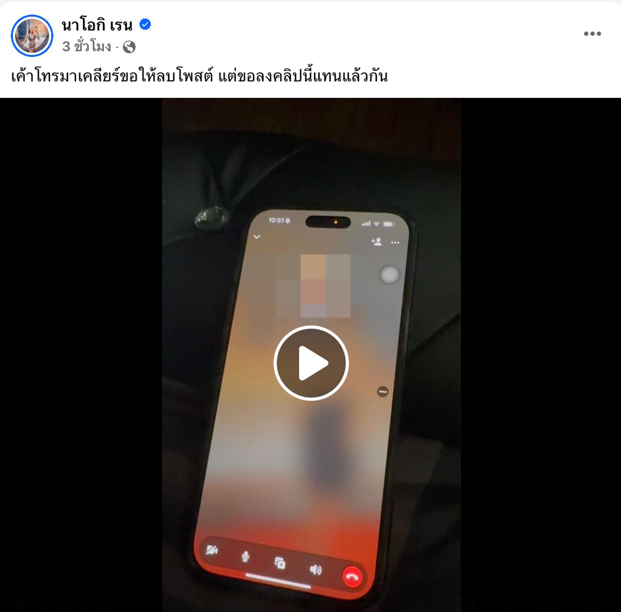 - จากนั้นนัสก็โพสต์คลิปที่กำลังสนทนากับหญิงสาวคนหนึ่งผ่านการโทรทางเฟซบุ๊ก
