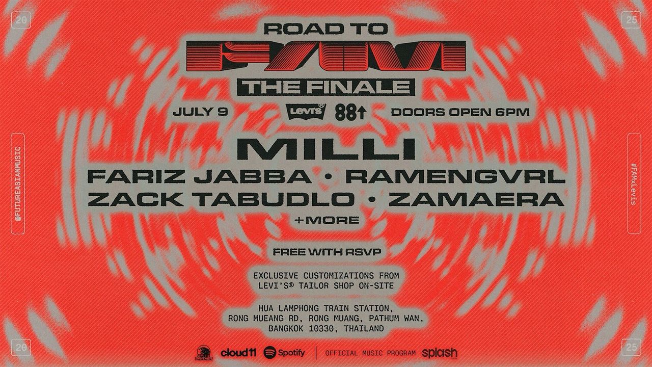 88rising เตรียมนำ Road to FAM – The Finale ปิดฉากซีรีส์ดนตรีระดับเอเชียในกรุงเทพฯ วันที่ 8–9 ก.ค. นี้ โดยมี MILLI ศิลปินหญิงไทยระดับโลก ร่วมแสดง ณ สถานีรถไฟหัวลำโพง พร้อมศิลปินเอเชียชื่อดังจากสิงคโปร์ มาเลเซีย และอินโดนีเซีย ภายใต้การสนับสนุนจาก Levi’s® และโปรดักชันโดย Brite Panther