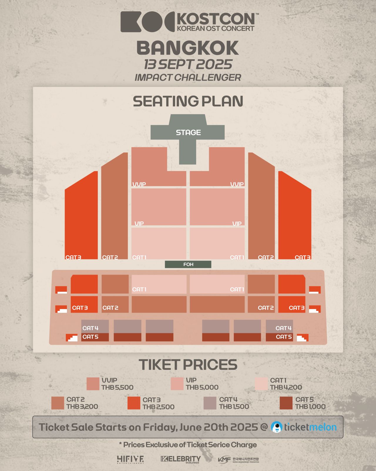 สำหรับงาน “KOSTCON KOREAN OST CONCERT” จะเปิดจำหน่ายบัตรในวันศุกร์ที่ 20 มิถุนายน 2568 ผ่านทาง Ticketmelon บัตรราคาเริ่มต้น 1,000 บาท