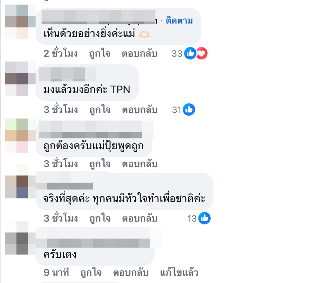 หลังจากที่ ปุ้ย TPN โพสต์ข้อความดังกล่าวไป ก็มีแฟนๆ นางงามเข้ามาคอมเมนต์แสดงความคิดเห็นว่าเห็นด้วยกับสิ่งที่เจ้าตัวโพสต์อย่างมากมาย