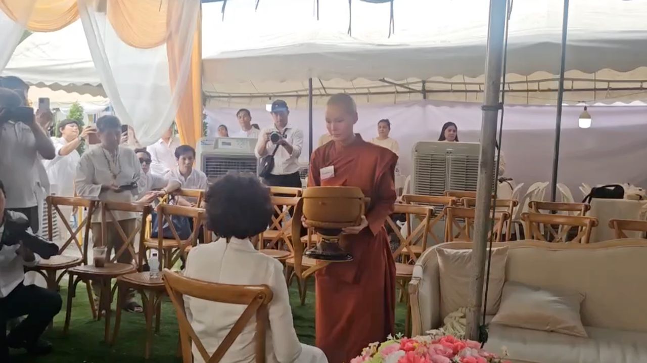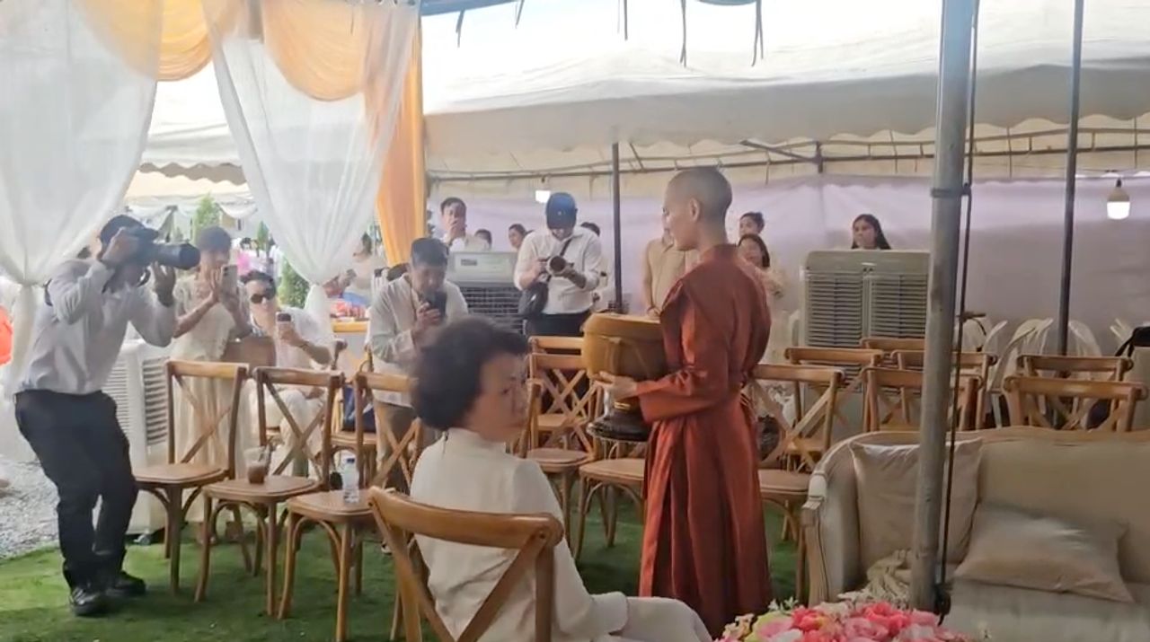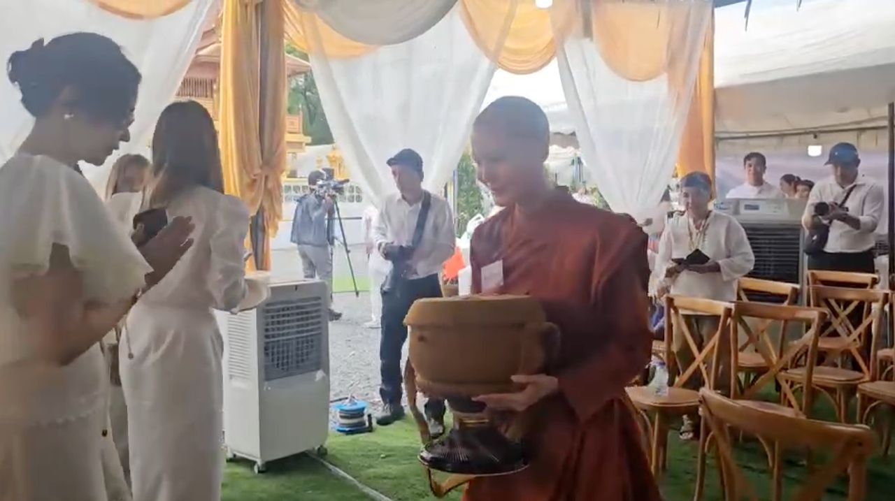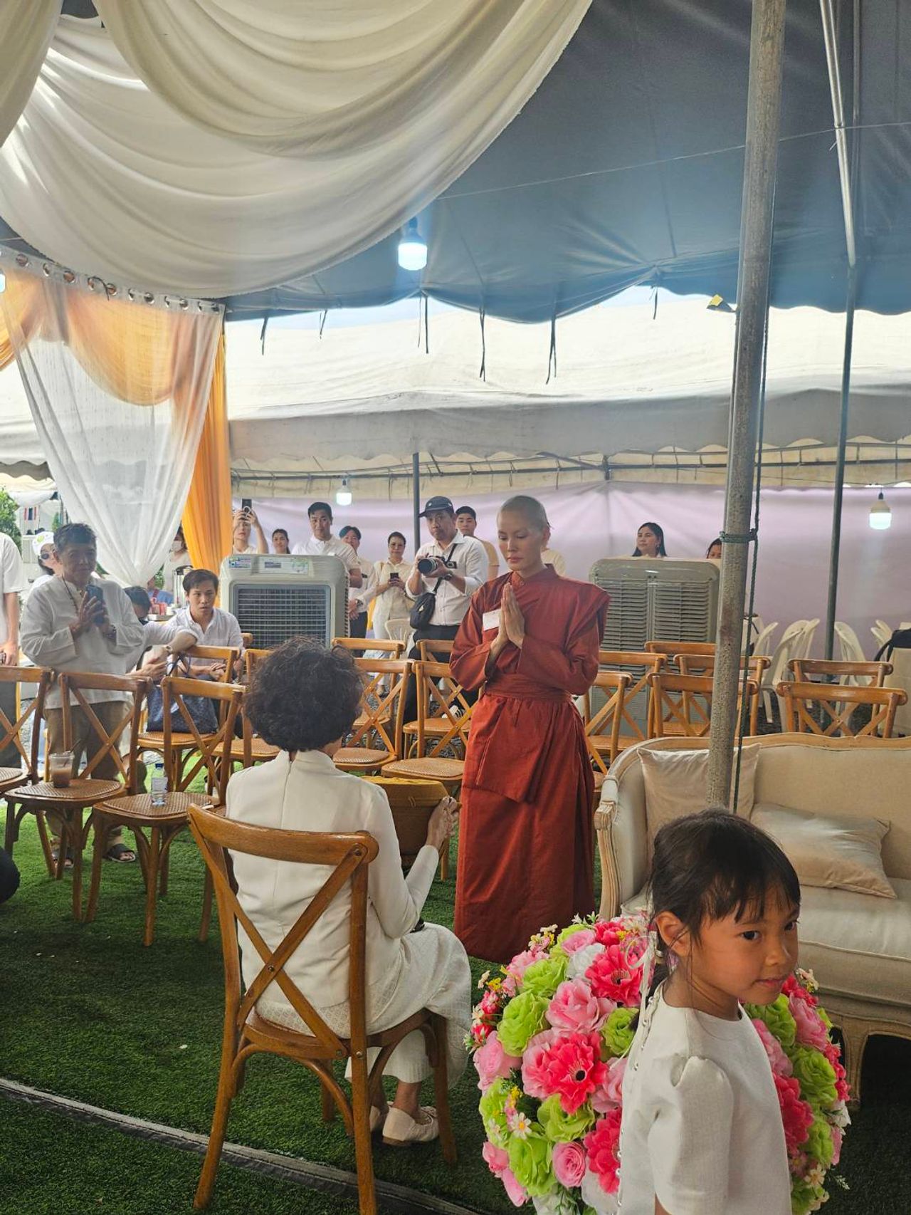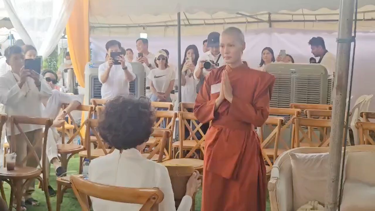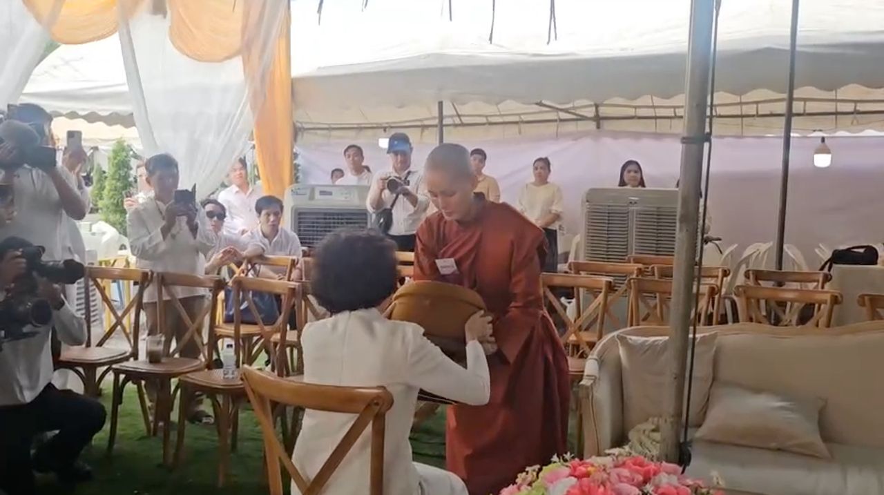 หลังจากเสร็จสิ้นพิธีในโบสถ์ ห่มผ้าเหลืองเรียบร้อยแล้ว ก็ได้มาทำพิธีรับบาตรกับคุณแม่ในบริเวณที่วัดได้จัดเตรียมเอาไว้ด้วยท่าทีสงบนิ่ง ดูอิ่มใจในการได้ปลงผมบวชในครั้งนี้ ทำเอาคนที่ร่วมพิธีรู้สึกได้รับพลังดีๆ ไปกับความตั้งใจในการบวชเป็นสามเณรีเจนี่