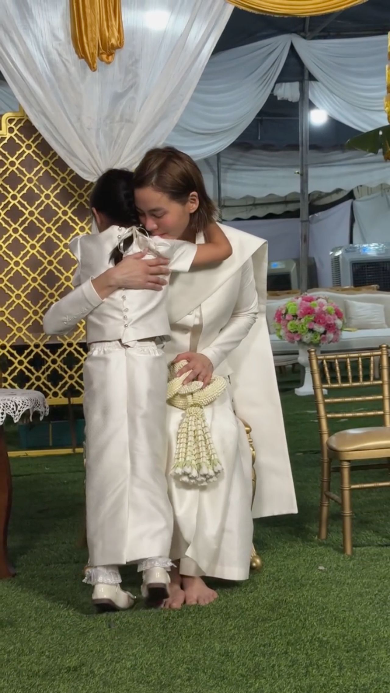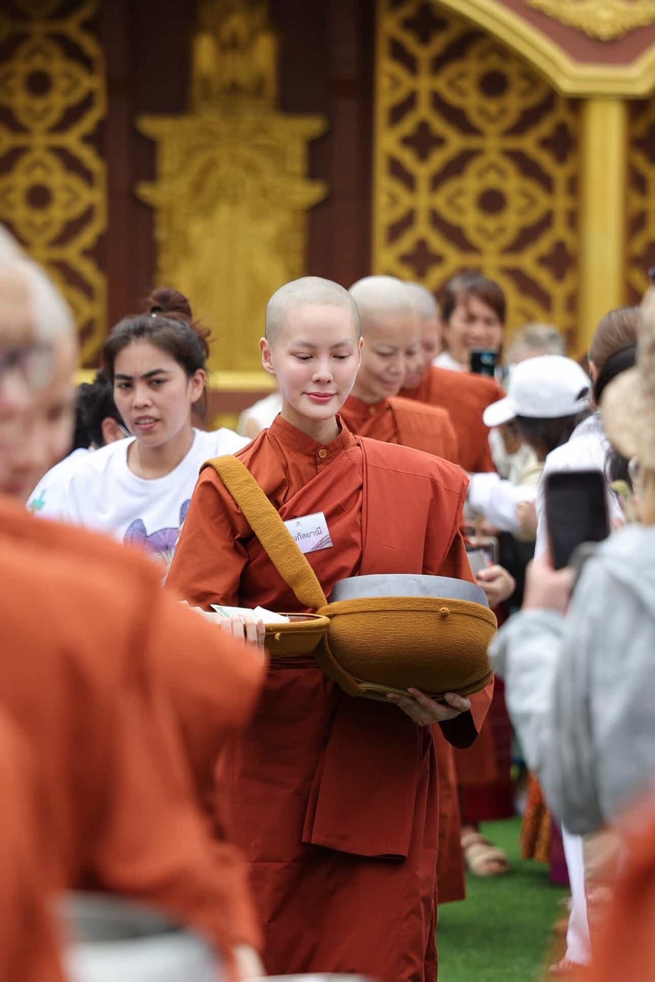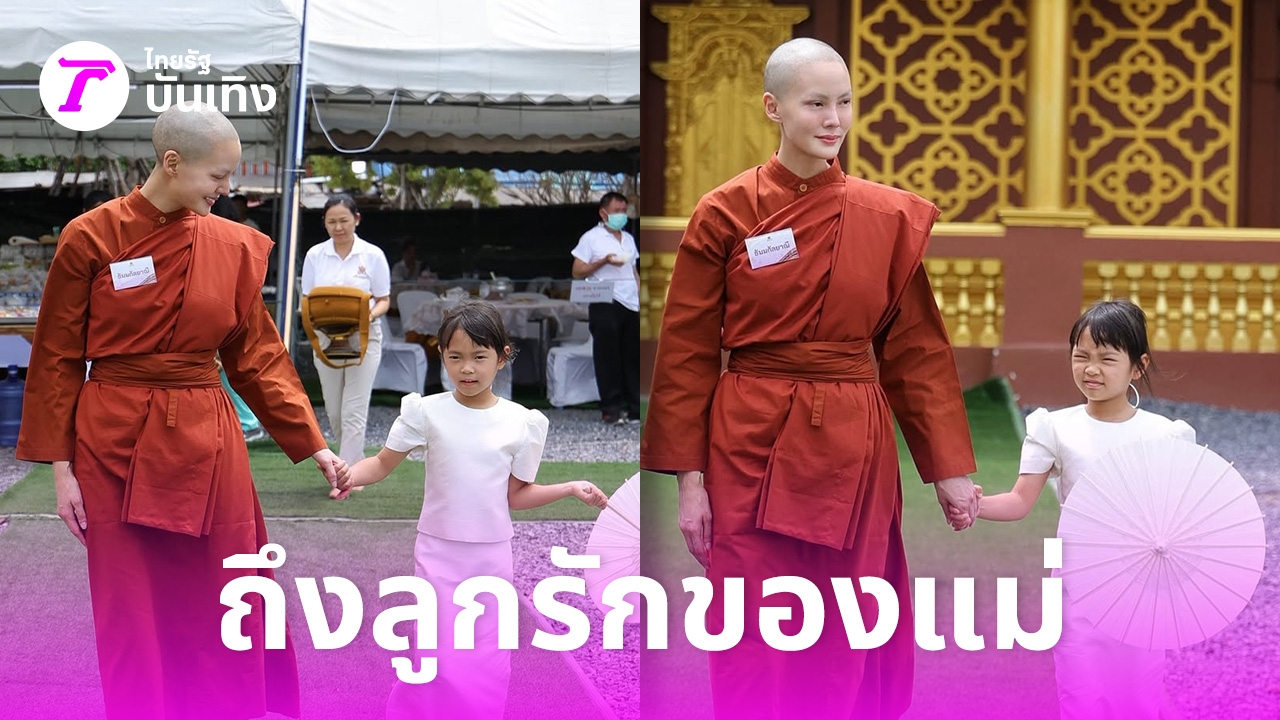 และอีกหนึ่งภาพความประทับใจคือภาพของ น้องโนล่า ลูกสาว ที่ก้มกราบและสวมกอดคุณแม่ก่อนทำพิธีปลงผม รวมไปถึงภาพที่สามเณรีธัมมกัลยาณี หรือสามเณรีเจนี่ จูงมือน้องโนล่า