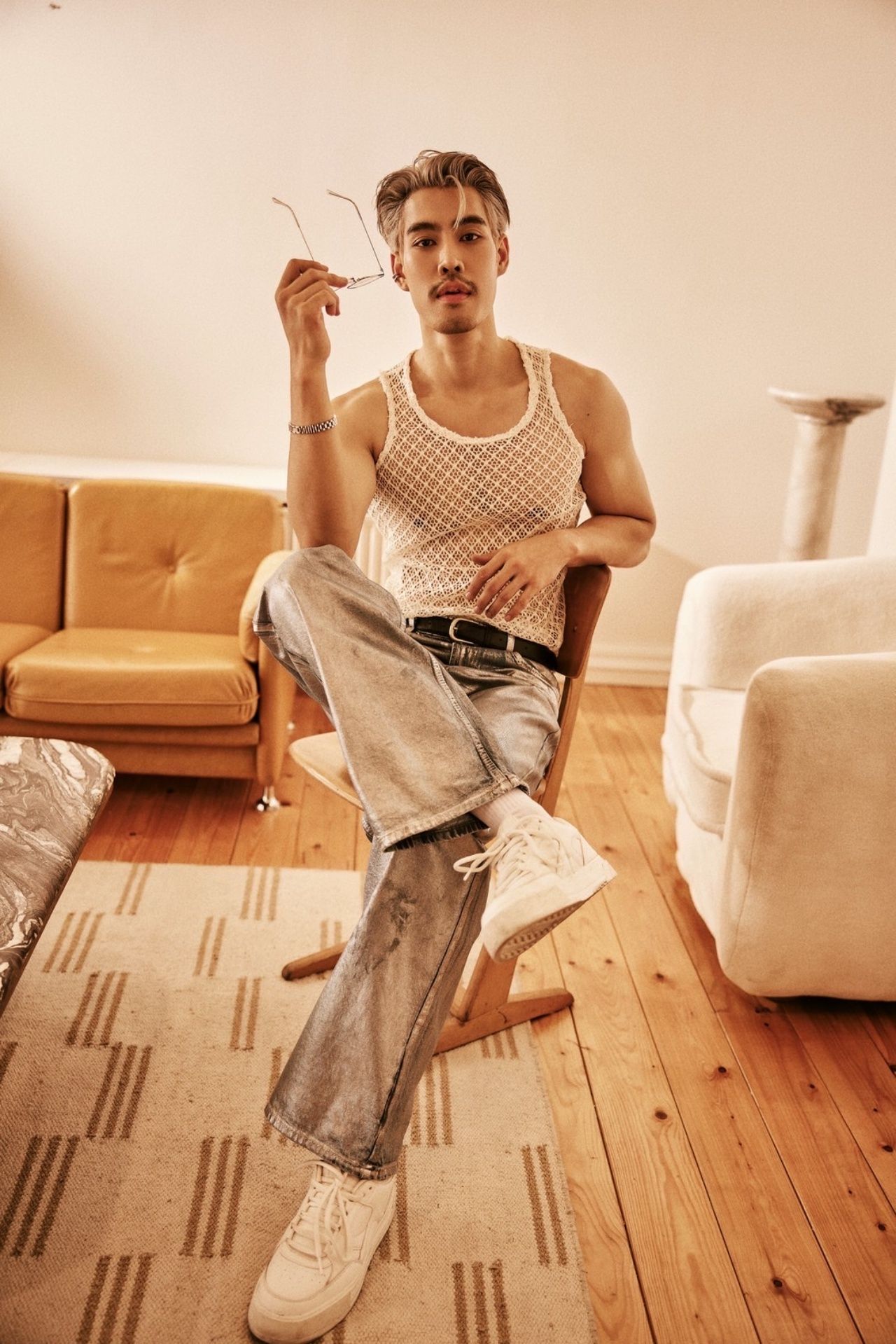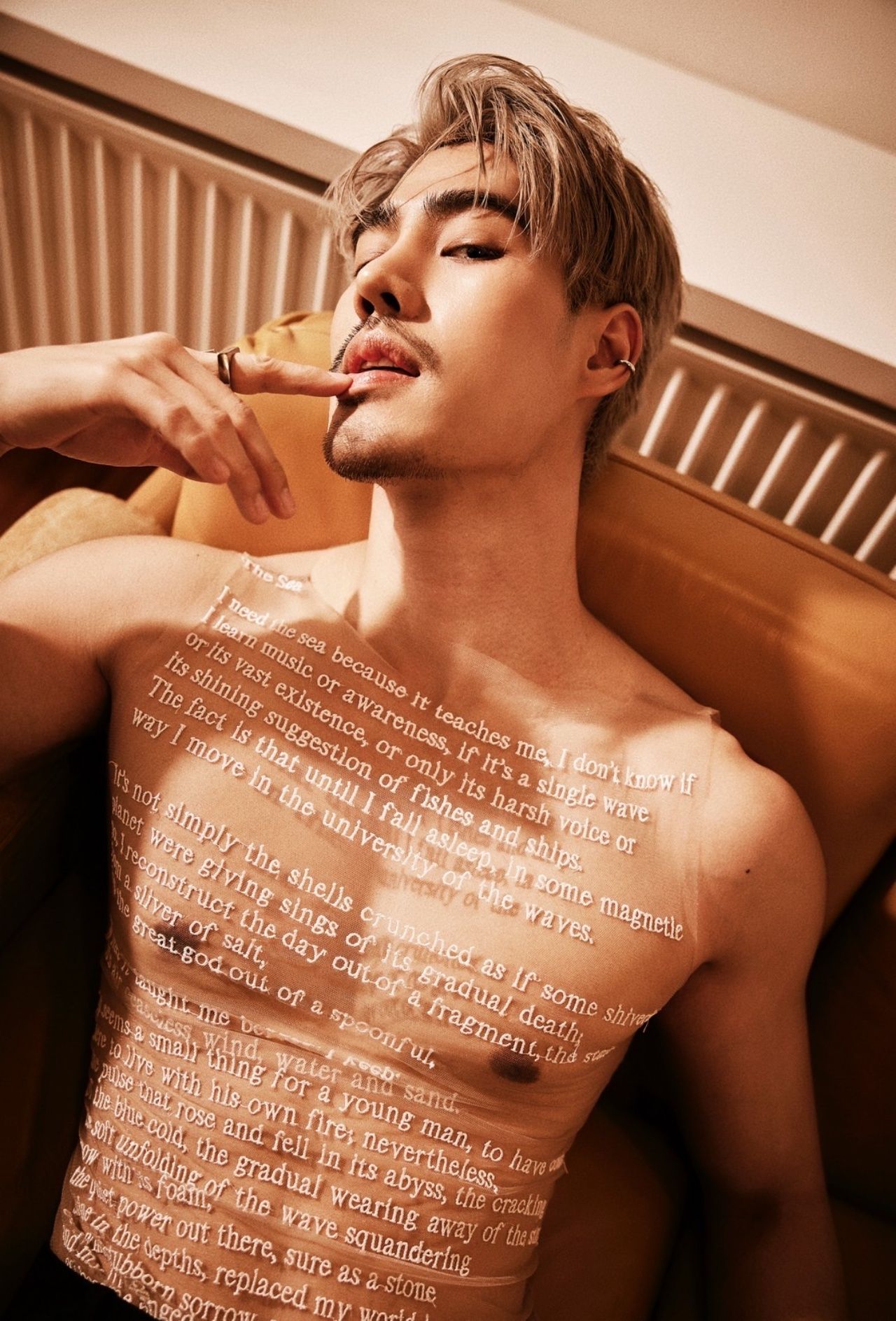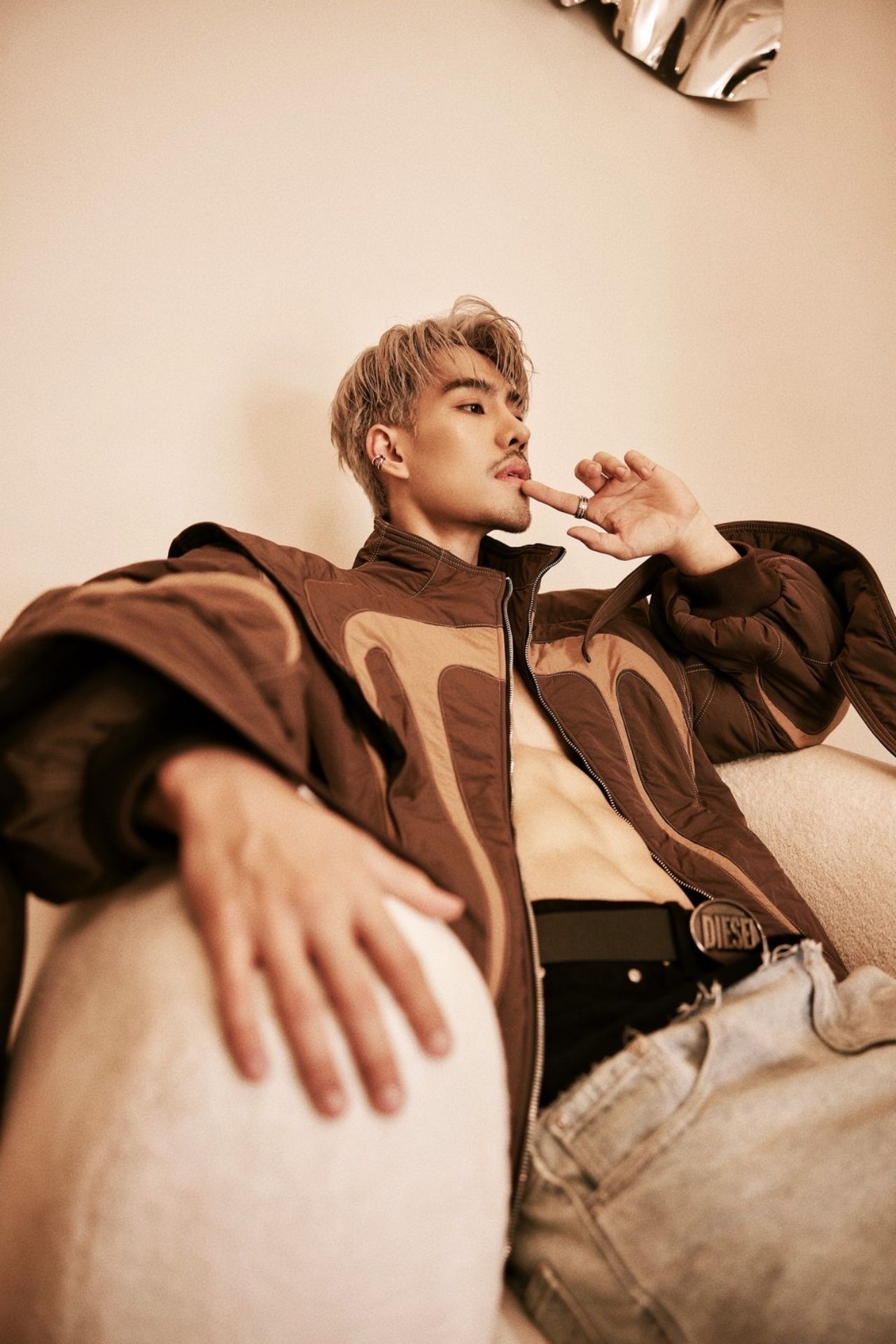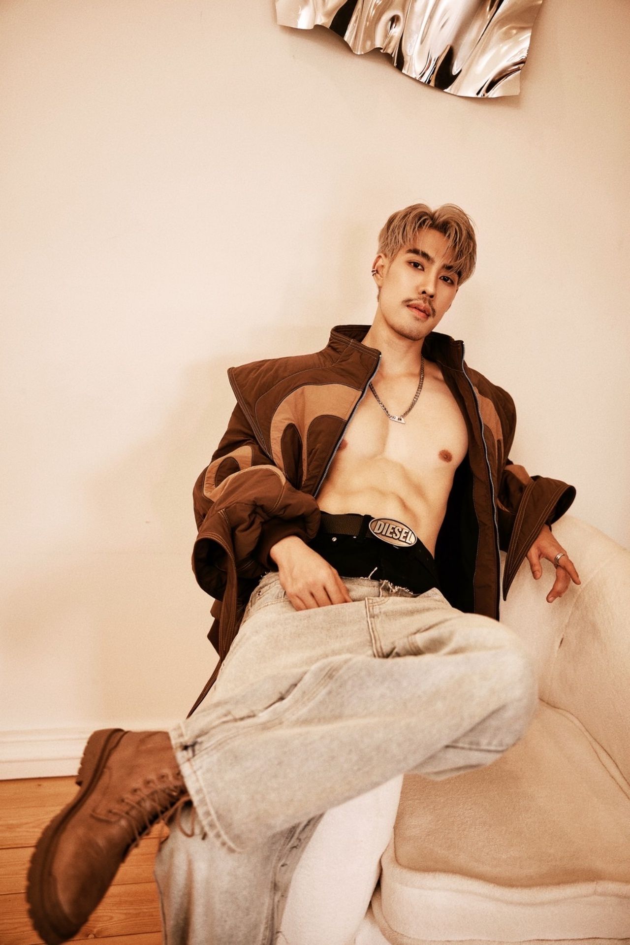 ไม่ว่าจะเป็นลุคถอดเสื้อโชว์กล้ามแน่น ๆ พร้อมตัวอักษรสกรีนสุดเก๋ทั่วลำตัว ที่แฝงไปด้วยความเท่และความน่าค้นหา หรือจะเป็นลุคเบลเซอร์สูทสีดำที่เผยให้เห็นแผงอกแบบพอดีๆ และอีกหนึ่งลุคกับเสื้อแจ็คเก็ตดีไซน์ล้ำคู่กับกางเกงยีนส์เอวต่ำ ที่ยิ่งตอกย้ำความหล่อเท่สไตล์หนุ่มสายแฟตัวจริง ต้องบอกเลยว่าไม่ใช่แค่หล่อและหุ่นดีเท่านั้น แต่ความมั่นใจในตัวเองและพลังงานที่ส่งผ่านเลนส์กล้องออกมา ยังเต็มไปด้วยเสน่ห์และคาริสม่าที่ยากจะละสายตา