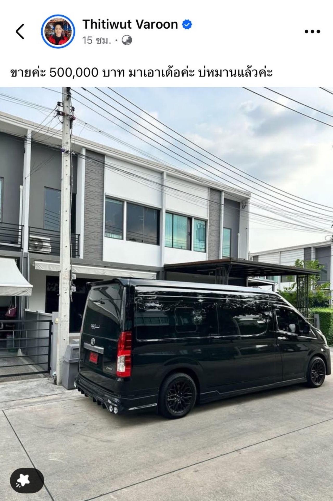 เพิ่งถอยรถตู้ป้ายแดงเพื่อไว้ใช้ในการเดินทางไปทำงาน สำหรับ บิ๊ก ผู้ใหญ่บ้านฟินแลนด์ หรือ บิ๊ก ธิติวุฒิ วารุณ แต่ล่าสุดออกประกาศขายซะแล้ว ซึ่งเจ้าตัวได้โพสต์ภาพพร้อมเขียนข้อความว่า "ขายค่ะ 500,000 บาท มาเอาเด้อค่ะ บ่หมานแล้วค่ะ"