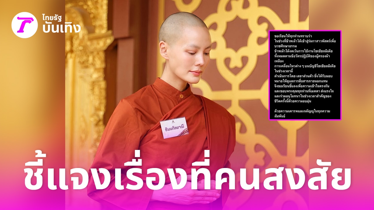 "ขอเรียนให้ทุกท่านทราบว่า ในช่วงที่ข้าพเจ้าได้เข้าสู่ร่มกาสาวพัสตร์เพื่อบวชศึกษาธรรม ข้าพเจ้าได้งดเว้นการใช้งานโซเชียลมีเดียทั้งหมดตามข้อวัตรปฏิบัติของผู้ครองผ้าเหลือง