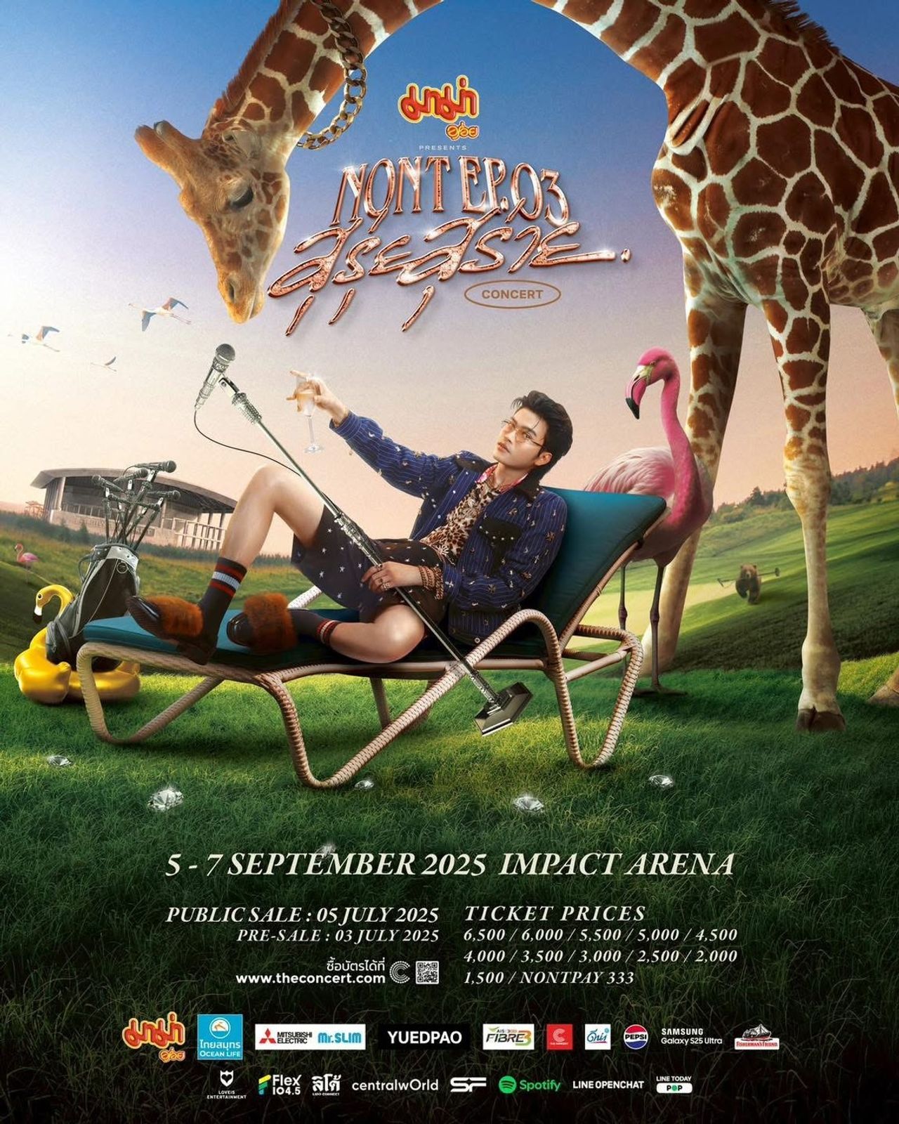 พีคไปกว่านั้นคือแพ็กเกจ NONTPAY 333 ที่เปิดโอกาส ให้ทุกคนได้สัมผัสความยิ่งใหญ่ของคอนเสิร์ตนี้ด้วยงบเพียง 333 บาทเท่านั้น! แต่ความสุรุ่ยสุร่ายยังไม่หมดแค่นั้น เพราะในแพ็กเกจ นี้ยังมีของขวัญพิเศษสุดเซอร์ไพรส์ที่ไม่เหมือนใคร นั่นคือ “ทุเรียนทอด”(เฉพาะราคา 6,500,6,000,5,500) ที่จะมาเพิ่มความลักชูในแบบฉบับ NONT TANONT แบบกรอบ ๆ หอม ๆ เพลินๆ ขณะดูคอนเสิร์ต และอีกหนึ่งไอเทมล้ำค่าที่สายมูต้องเลิฟ “ยันต์หาที่จอดรถ” (ทุกราคา) ที่เชื่อกันว่า เรียกชื่อ “นนท์ ธนนท์” 3 ครั้ง แล้วจะเจอที่จอดทันที!