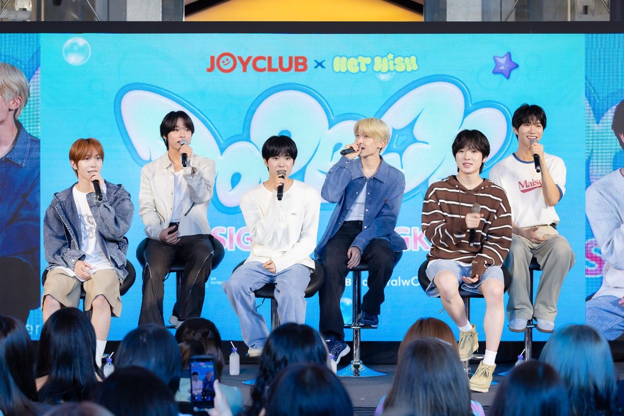 สุดป็อป ! NCT WISH (เอ็นซีที วิช) ศิลปินชายกลุ่มล่าสุดจาก SM ENTERTAINMENT (เอสเอ็ม เอนเทอร์เทนเมนต์) ที่ประกอบด้วย 6 สมาชิก ได้แก่ SION (ชิอน), RIKU (ริคุ), YUSHI (ยูชิ), JAEHEE (เจฮี), RYO (เรียว) และ SAKUYA (ซาคุยะ) มาเยือนประเทศไทยพร้อมแจกความสดใสให้แฟนคลับชาวไทยมาจอยกันจนล้นห้าง ในงาน ‘JOY CLUB x NCT WISH ‘poppop’ FANSIGN in BANGKOK’ (จอยคลับ เอ็กซ์ เอ็นซีที วิช ‘ป็อปป็อป’ แฟนไซน์ อิน แบงค็อก) เมื่อวันศุกร์ที่ 6 มิถุนายน 2568 ณ centralwOrld ชั้น 1 โซน central cOurt งานนี้จัดขึ้นโดย JOY CLUB (จอย คลับ) แพลตฟอร์มสมาชิก Loyalty & Rewards Platform ใหม่จาก SM True (เอสเอ็ม ทรู)