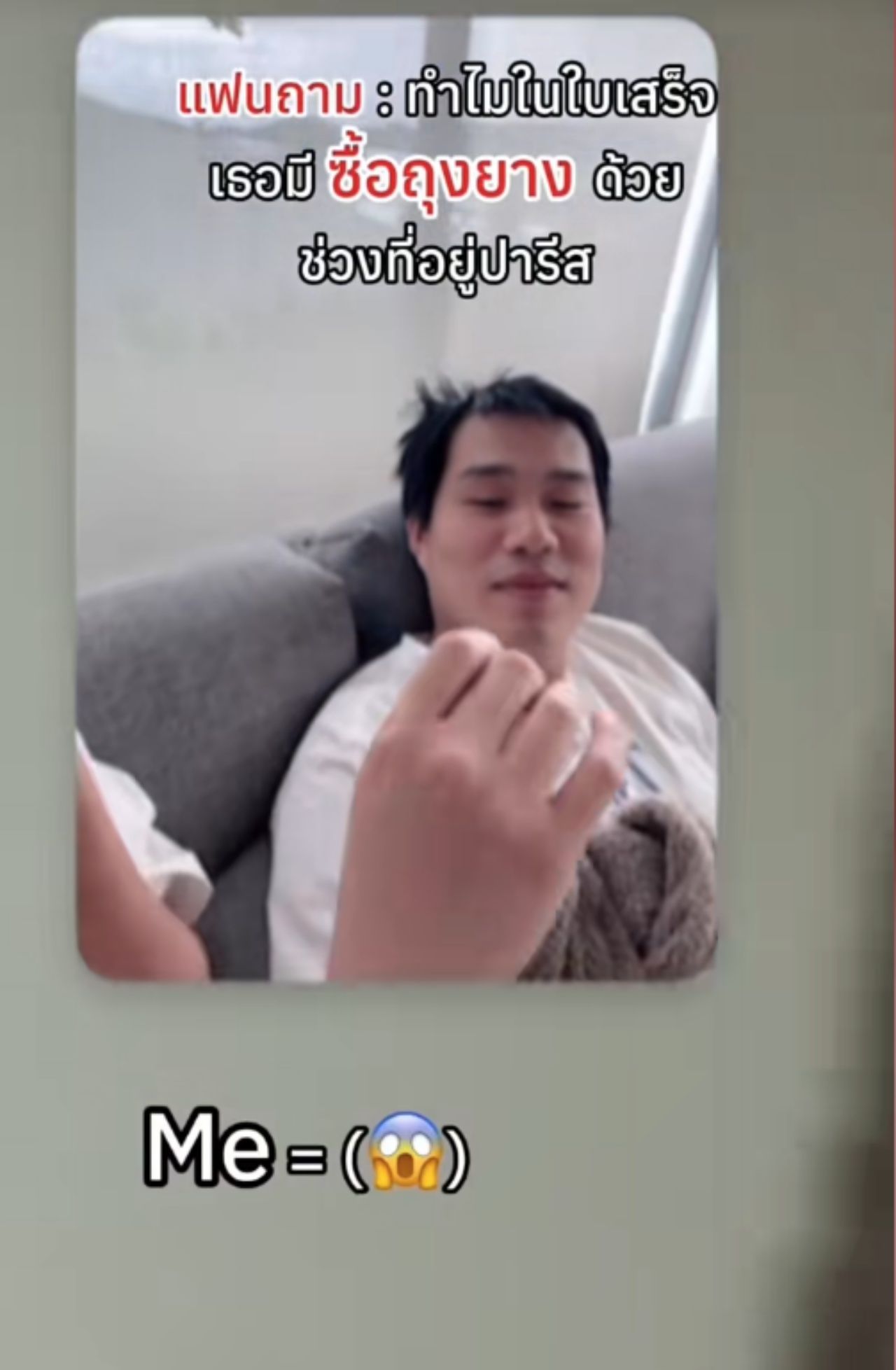 ซึ่งในคลิป พัดชา เพื่อนสาวของคารีสา ได้เล่าว่า "งงกันไปเลยทีเดียวจ้า คอนดอมอันนี้มันเป็นของฉันเองจ้า ดิฉันฝากคารีสาซื้อของที่ปารีสให้ ตอนที่อยู่ปารีสด้วยกัน เราก็ต้องกันไว้ดีกว่าแก้ แต่คราวนี้ใครจะไปรู้ว่าการฝากซื้อครั้งนี้จะเป็นปัญหาสุดใหญ่โตของคารีสา คือโดนแฟนตัวเอง พี่เคน คอยเช็กรายละเอียดต่างๆ ว่าเธอซื้ออะไรไปบ้าง ซึ่งในนั้นก็มีคอนดอมที่ดิฉันฝากซื้อด้วย"