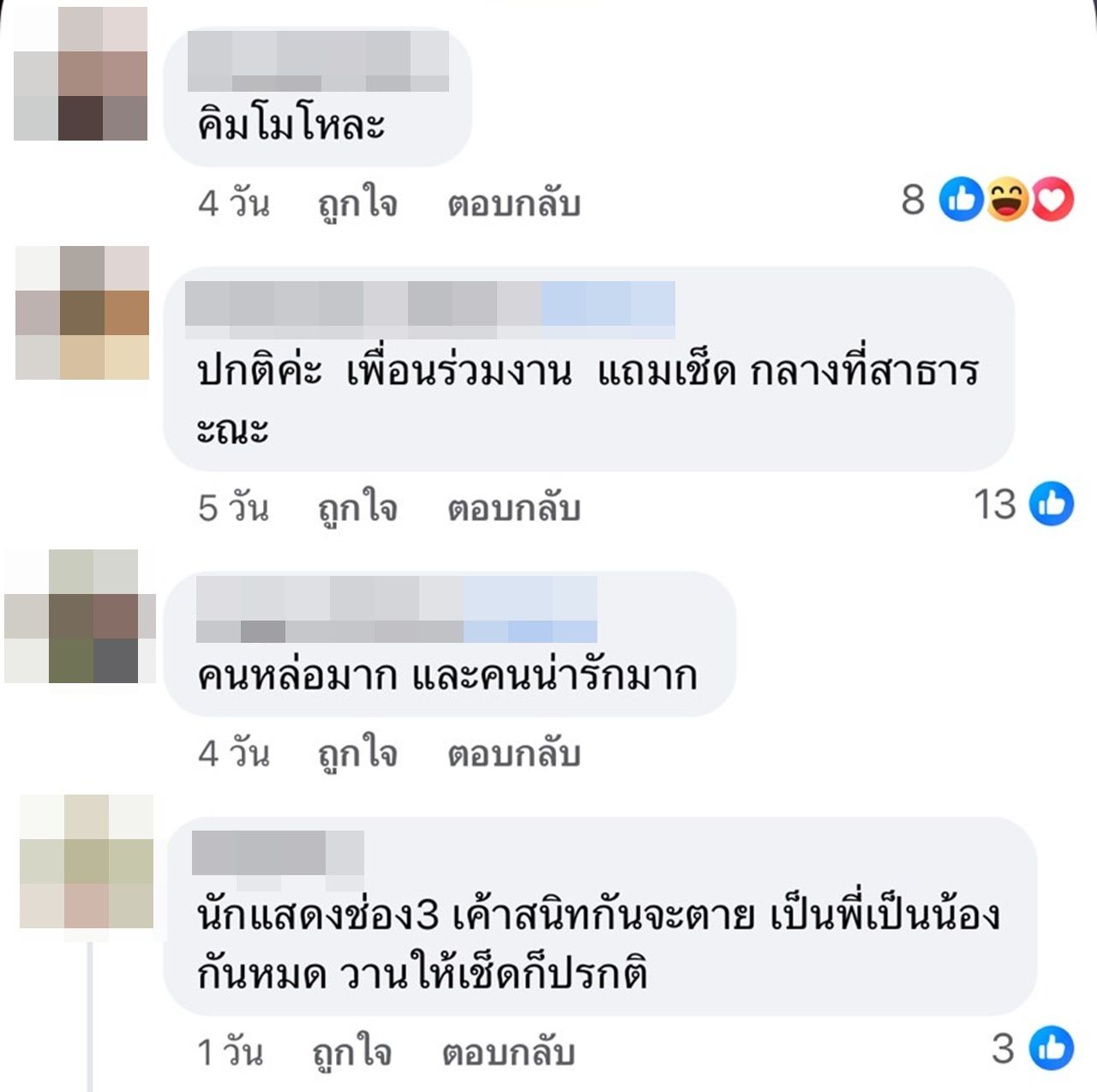 แต่บางส่วนก็มองว่า เป็นปกติของเพื่อนร่วมงานที่สนิทกัน และไม่ควรคิดมากเกินเหตุ เพราะหากมีเจตนาไม่ดีจริง ก็คงไม่ทำต่อหน้าคนจำนวนมาก