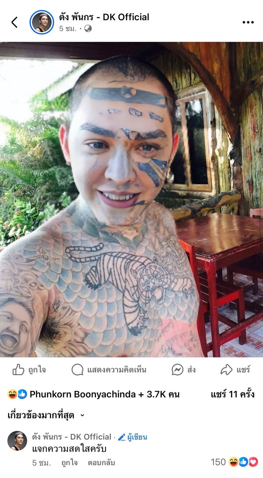 และล่าสุดเมื่อช่วงเช้าที่ผ่านมา แอดมินเพจดัง พันกร ก็ได้โพสต์ภาพของแม่นายดังที่มีรอยสักเต็มตัว มาพร้อมแคปชั่นแซวขำๆ ว่า “วันนี้มีนัดกับช่าง เหลือเติมอีกข้าง” ก่อนจะคอมเมนต์ใต้โพสต์ว่า “แจกความสดใสครับ”