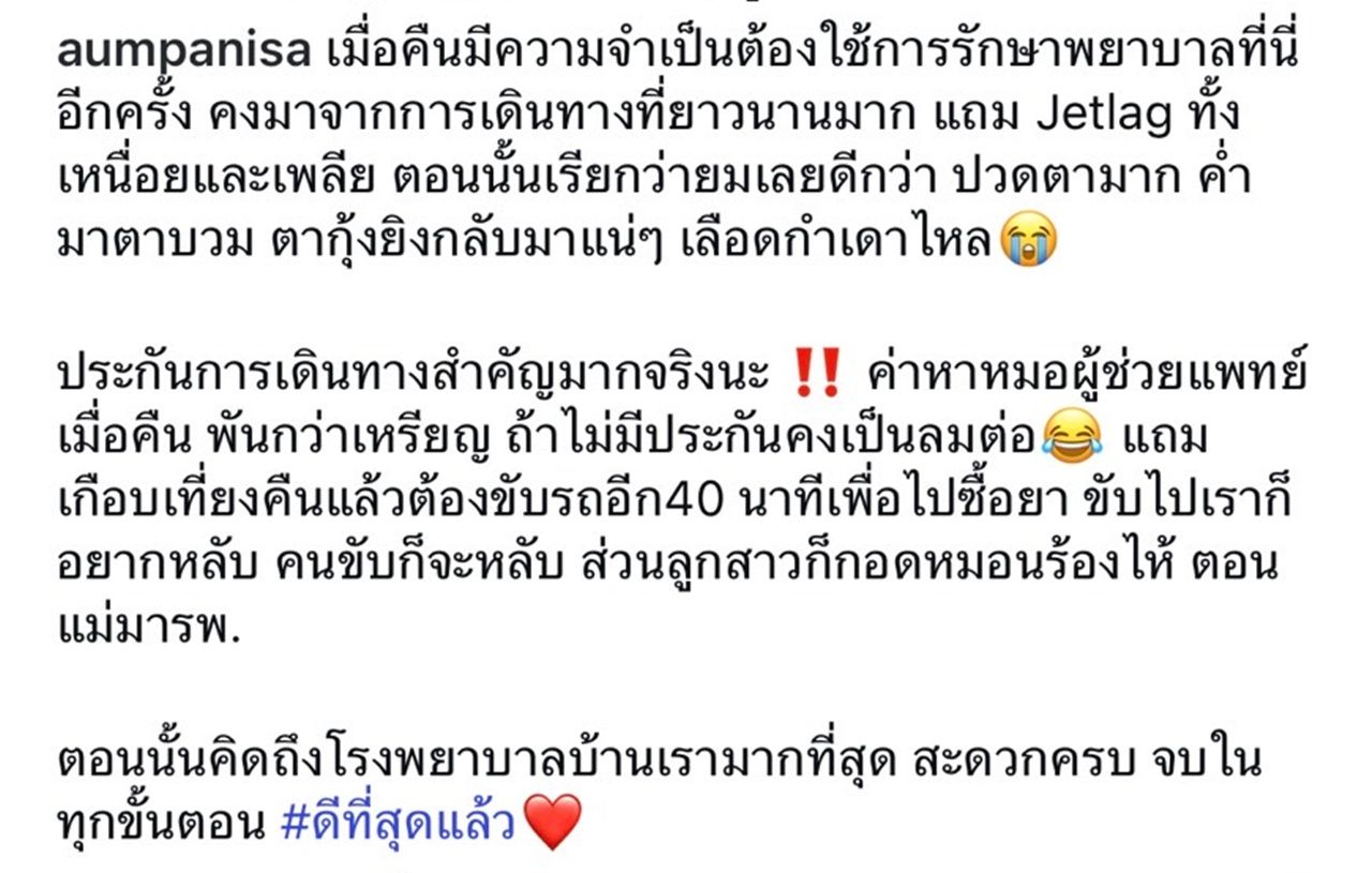 ประกันการเดินทางสำคัญมากจริงนะ ค่าหาหมอผู้ช่วยแพทย์เมื่อคืน พันกว่าเหรียญ (ราวๆ 3.2 หมื่น) ถ้าไม่มีประกันคงเป็นลมต่อ แถมเกือบเที่ยงคืนแล้วต้องขับรถอีก 40 นาทีเพื่อไปซื้อยา ขับไปเราก็อยากหลับ คนขับก็จะหลับ ส่วนลูกสาวก็กอดหมอนร้องไห้ ตอนแม่มารพ. ตอนนั้นคิดถึงโรงพยาบาลบ้านเรามากที่สุด สะดวกครบ จบในทุกขั้นตอน #ดีที่สุดแล้ว"