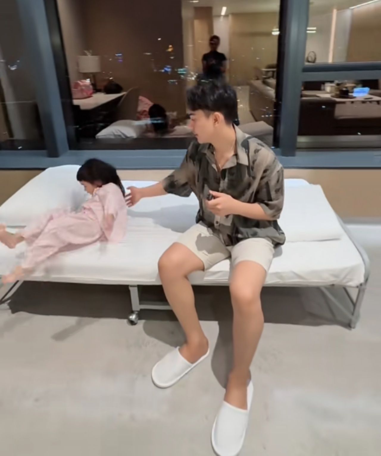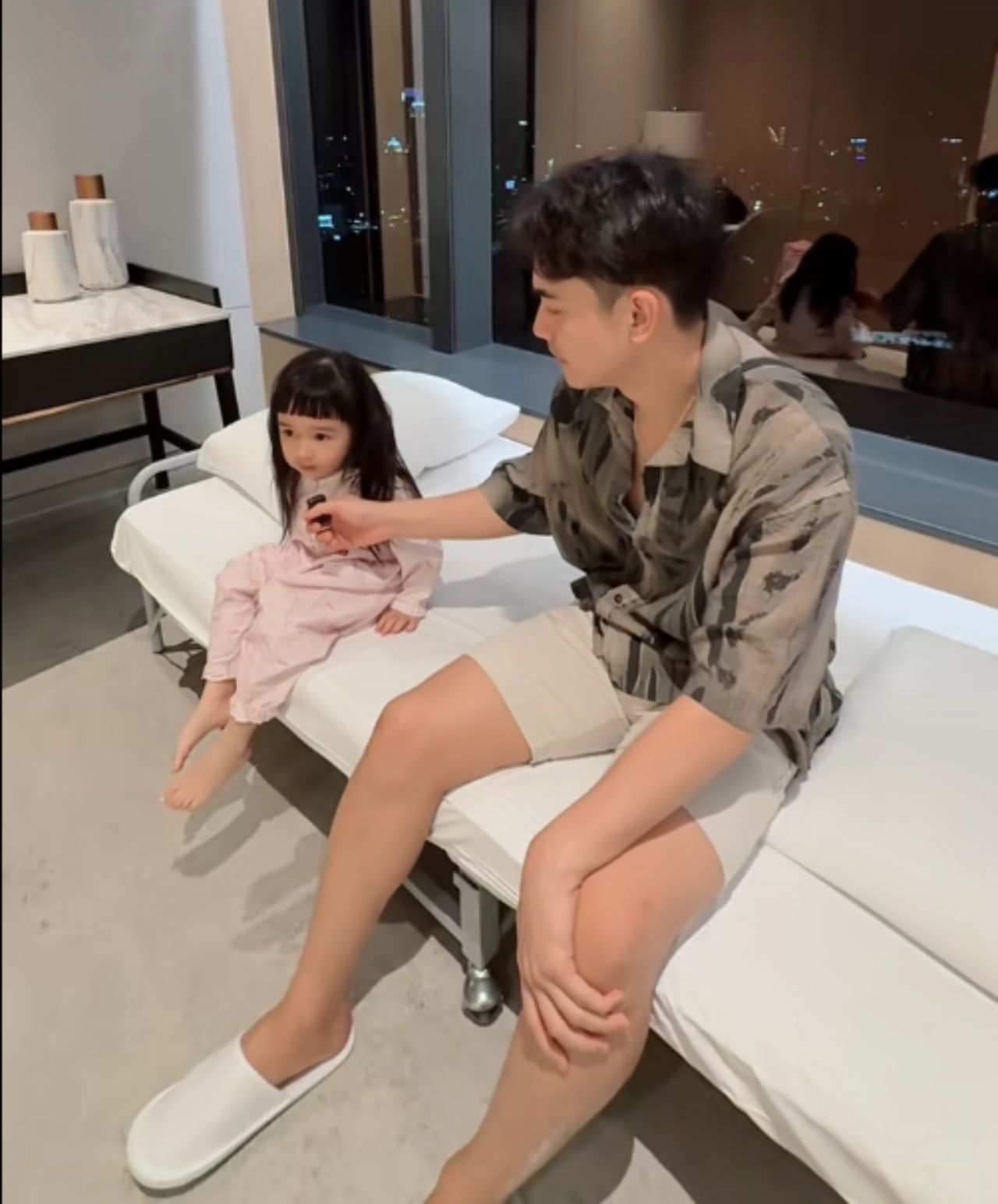 พร้อมกับรีวิวส่วนต่างๆ ของห้องพักให้ดู และบอกว่า ซื้อแพ็กเกจคลอด 500,000 กว่าบาท ซึ่งห้องนี้เป็นห้องไทป์สูงสุดของโรงพยาบาล โดยภายในห้องจะมีห้องนอนของญาติผู้ป่วย ที่จะมีทีวี เตียงนอน ตู้เสื้อผ้า ห้องน้ำส่วนตัว และก็จะมีห้องทานอาหาร ห้องนั่งเล่น โดยครอบครัวและญาติๆ จะได้ใช้ชีวิตร่วมกันในห้องนี้ได้เลย ถือว่าคุ้มค่ากับราคา 500,000 กว่าบาทรวมคลอด และยังมองเห็นวิวกรุงเทพสวยๆ แบบพาโนรามาได้อีกด้วย