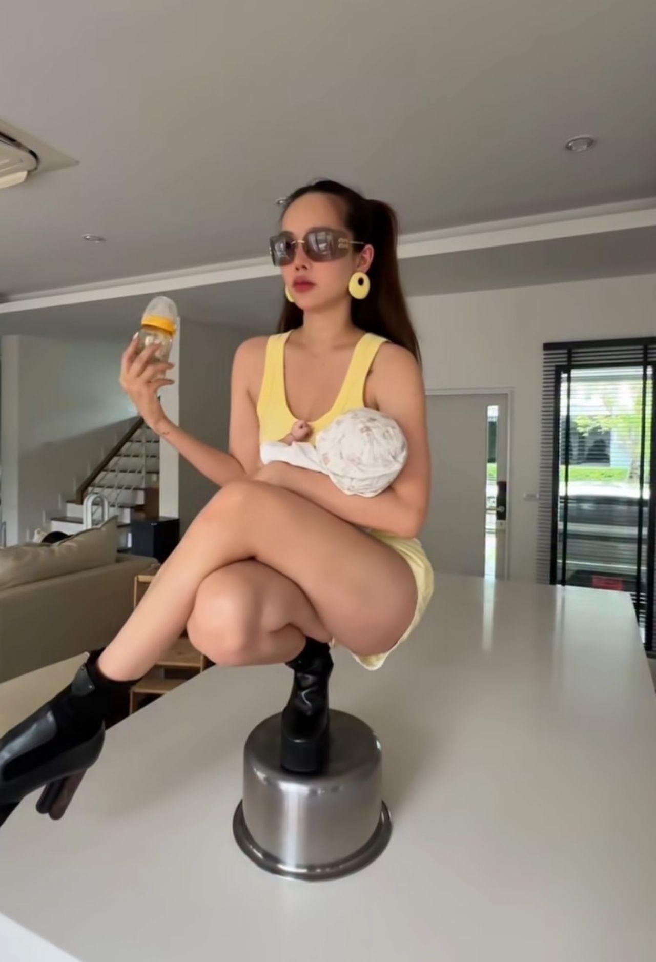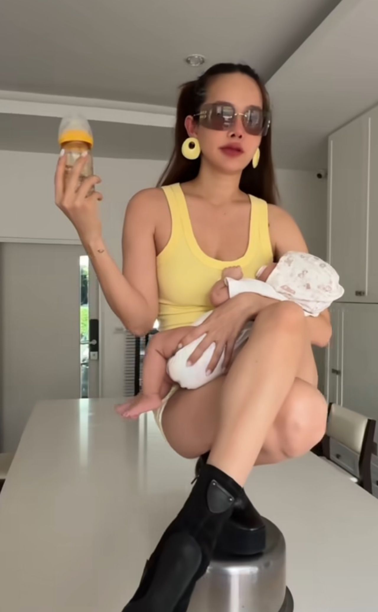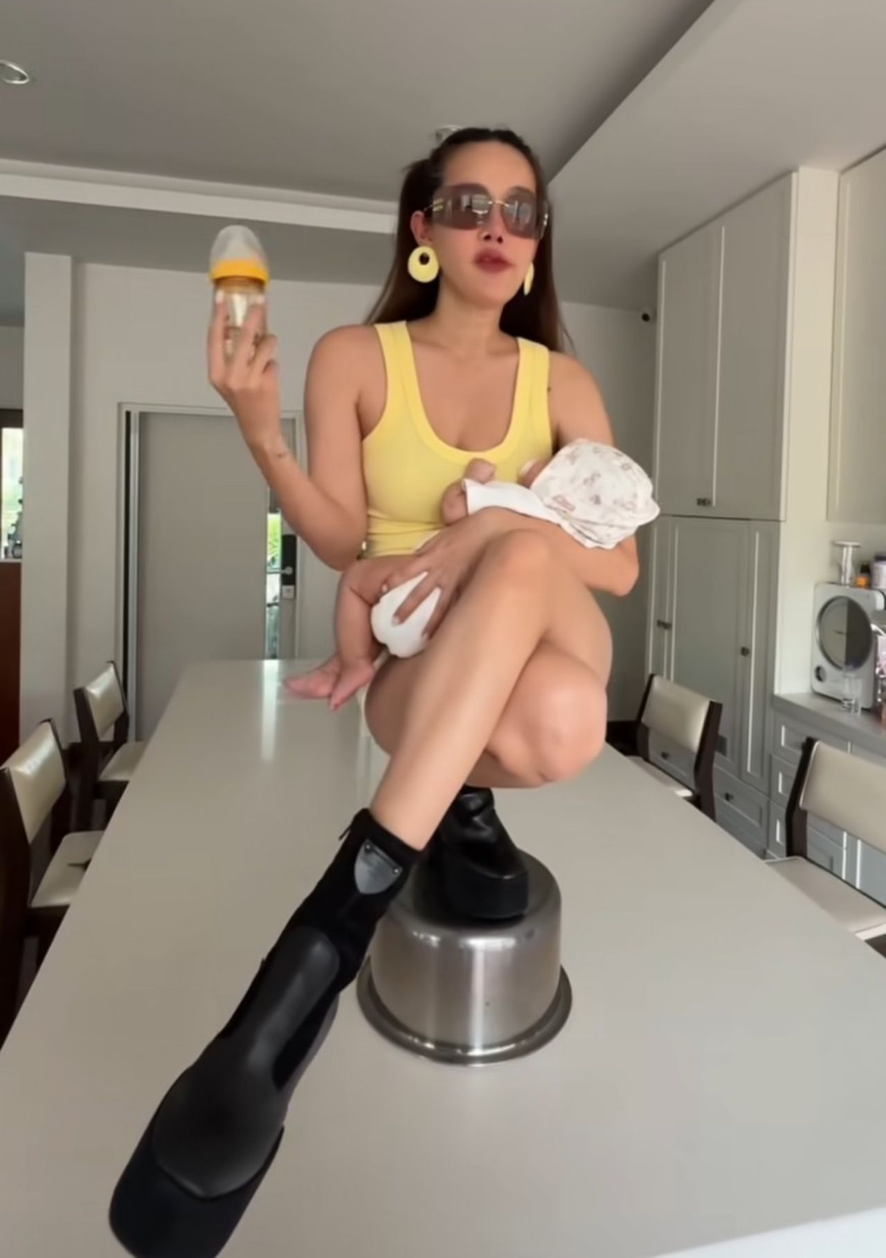 เป็นตัวมารดาตัวให้นมบุตรของแท้ สำหรับคุณแม่ลูกสอง ปุ้มปุ้ย พรรณทิพา ที่ล่าสุดทำคอนเทนต์สุดจึ้งจนยากจะเลียนแบบได้ เมื่อเจ้าตัวได้โพสต์คลิปที่ใส่รองเท้าส้นสูง นั่งไขว่ห้างบนหม้อที่วางอยู่บนโต๊ะกินข้าว ในมืออุ้มลูกและอีกข้างถือขวดนมลูกสาว