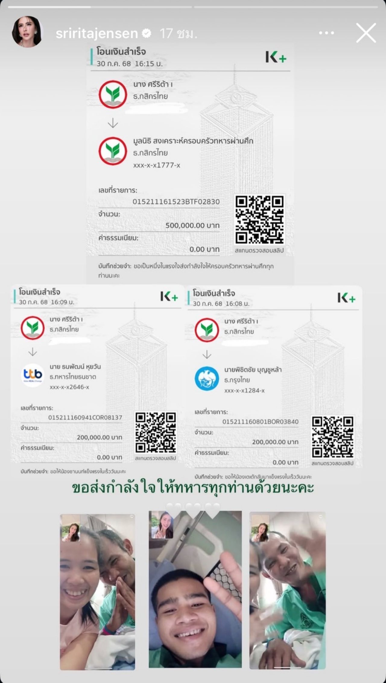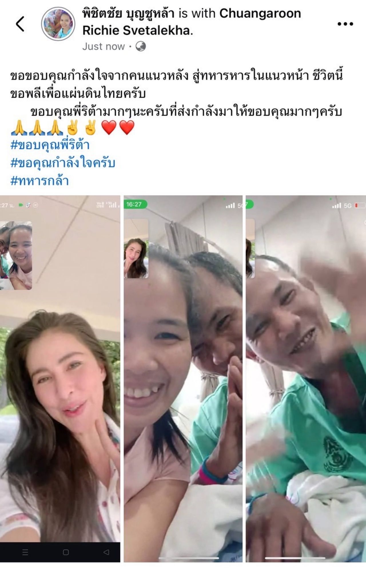 เป็นเรื่องราวที่น่าประทับใจมากจริงๆ เมื่อ ริต้า ศรีริต้า เจนเซ่น ได้แสดงน้ำใจต่อทหารไทย พร้อมแสดงความเป็นห่วง โดย ริต้า ได้วิดีโอคอลตรงถึง 2 ทหารกล้า คือ "เตเต้ พิชิตชัย" และ "ชานน์ ธนพัฒน์" ที่ได้เหยียบกับระเบิดจนสูญเสียขา ซึ่งกำลังรักษาตัวอยู่ที่โรงพยาบาล