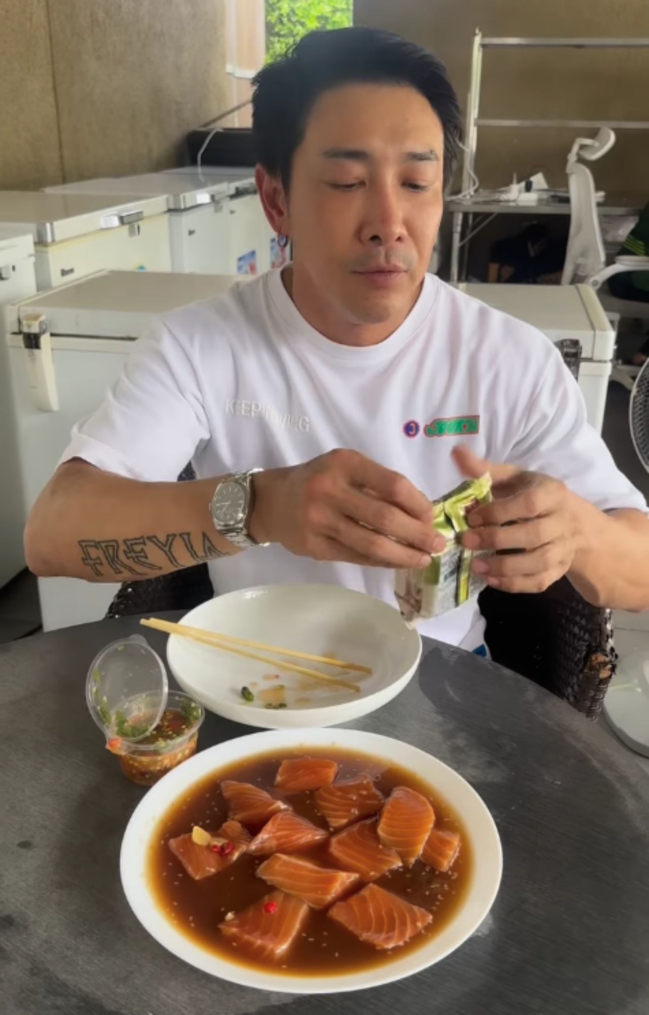 - ยอมรับว่าธุรกิจขายปลาแซลมอน ตั้งใจทำมาก แต่มีบางเหตุการณ์ที่มันทำให้ไปต่อไม่ได้ แต่ไม่เป็นไร ก็จะสู้ใหม่อีกครั้ง