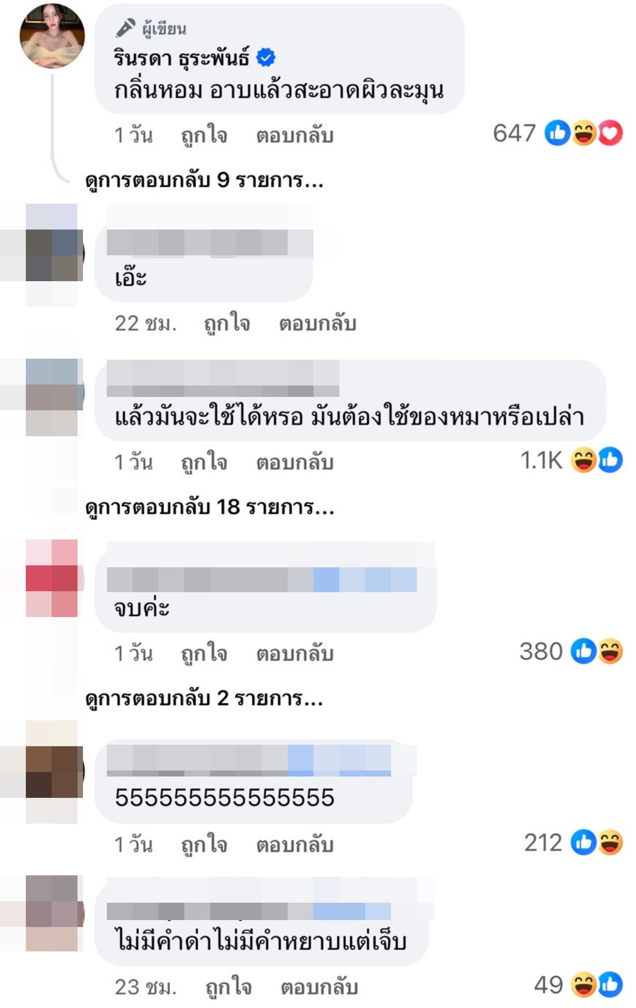 ล่าสุด โยชิ ก็เลือกวิธีโต้กลับแบบสวยๆ แต่จี๊ดทุกคำ ซึ่งเธอนั้นได้โพสต์โปรโมทผลิตภัณฑ์อาบน้ำ แต่เขียนแคปชั่นสุดจี๊ดว่า "ความสวย เราต้องเริ่มต้นตั้งแต่การอาบน้ำนะคะ" และเขียนเพิ่มในคอมเมนต์ว่า "กลิ่นหอม อาบแล้วสะอาด ผิวละมุน"