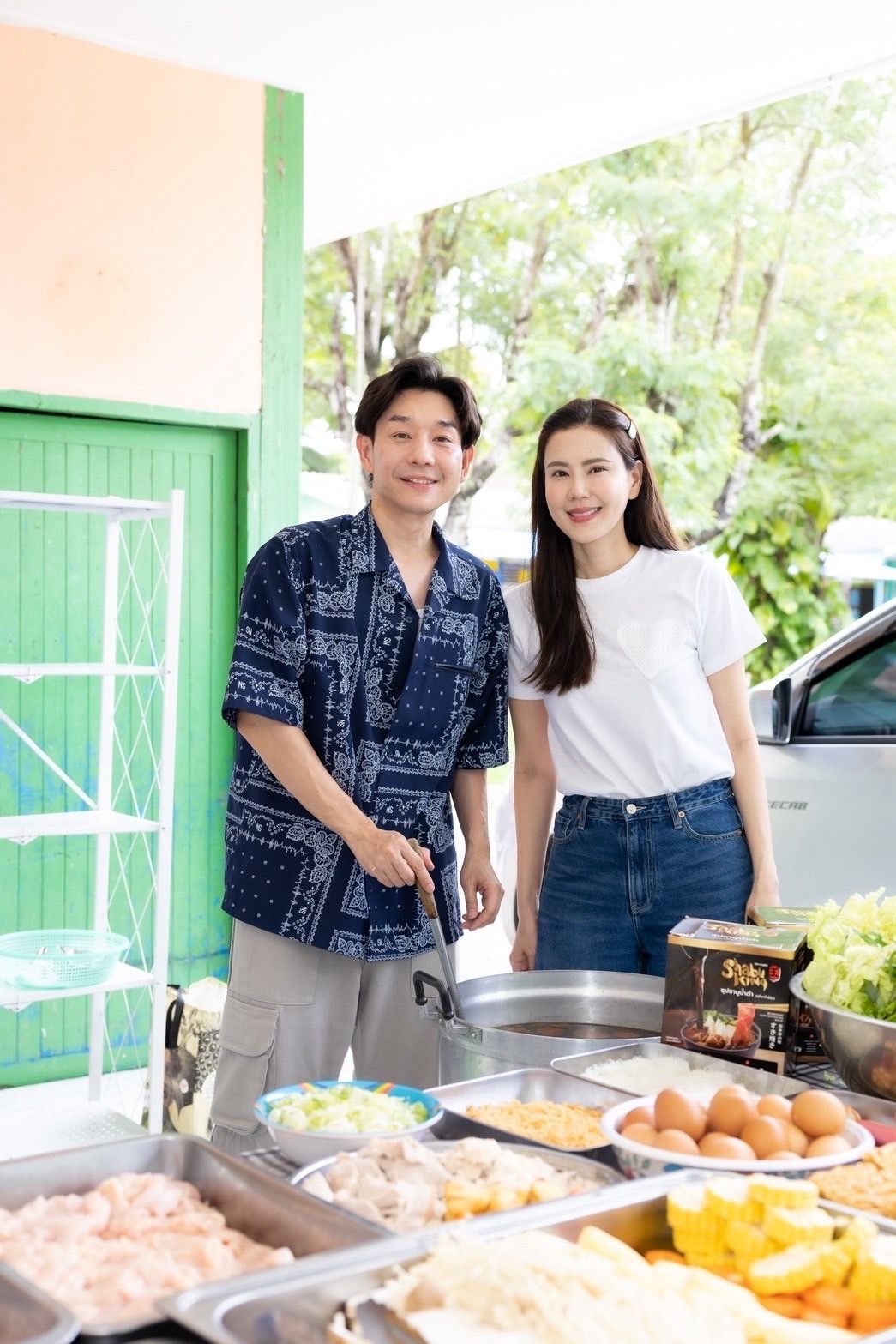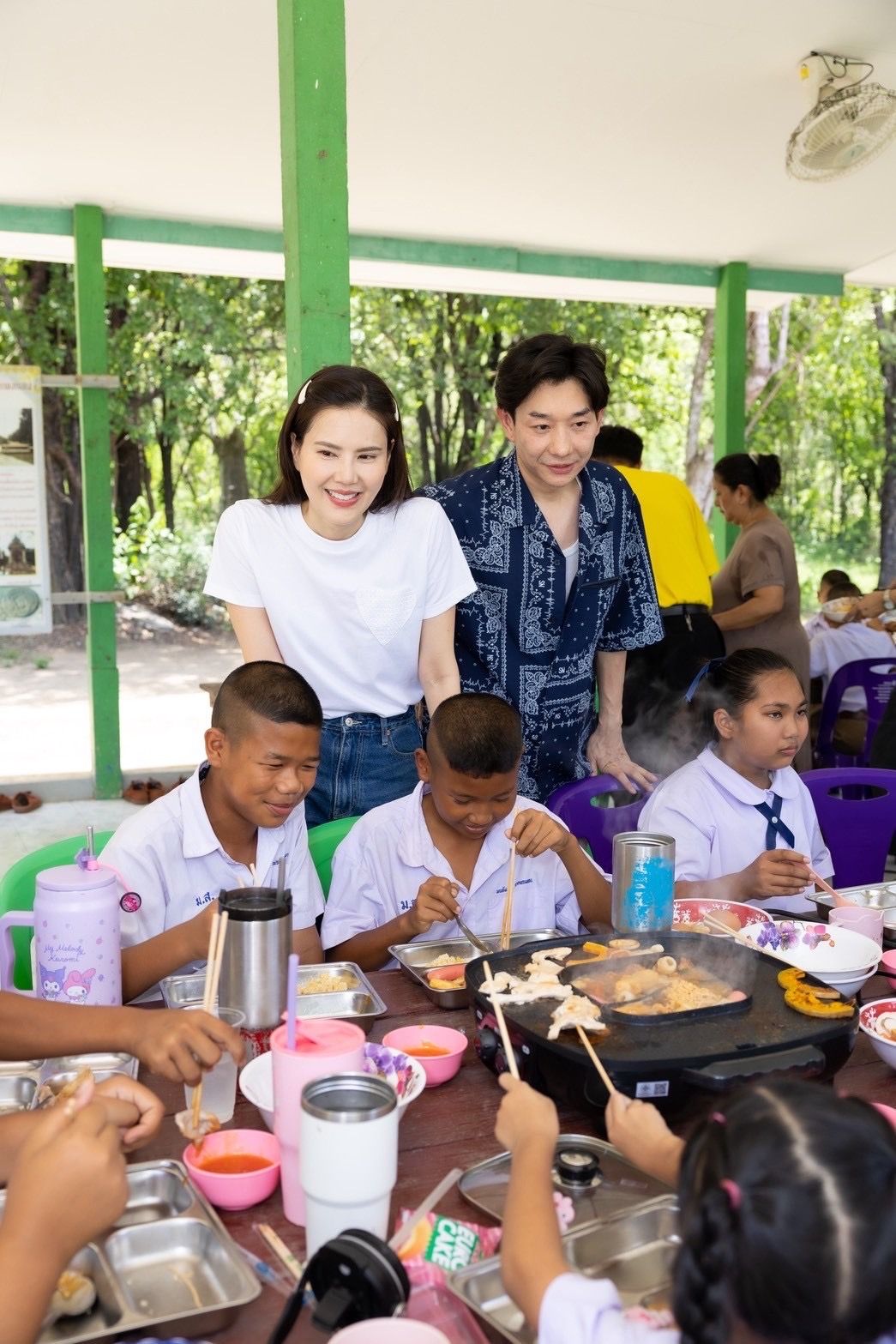 ซึ่งครั้งนี้ก็ได้ใช้งบส่วนตัวของทั้งคู่รวมถึงทิปทุกบาททุกสตางค์ในการเล่นคอนเสิร์ตของหนุ่มบอย อนุวัฒน์ และผู้ใหญ่ใจดีหลายๆ ท่านที่ให้การช่วยสนับสนุน ผลักดันนำพาความอิ่มอร่อยผ่าน #รถกับข้าวบอยเจี๊ยบ ไปถึงเหล่าน้องๆ ในโรงเรียน จนทำให้ได้เห็นภาพบรรยากาศที่เต็มไปด้วยรอยยิ้มและความอบอุ่น ท่ามกลางอาหารกลางวันมื้อพิเศษให้กับน้องๆ นักเรียน ซึ่งเมนูที่ทั้งคู่ยกมาฝากน้องๆ วันนี้บอกเลยว่าเป็นเมนูที่ทั้งคู่ถนัดสุดๆ อย่าง “ชาบู หมูกระทะ” เพราะหลังจากสืบทราบจากคณะครูอาจารย์ว่าน้องๆ ยังไม่เคยได้ทาน งานนี้ทั้งคู่เลยจัดเต็มให้อิ่มกันจุกๆเลยทีเดียว