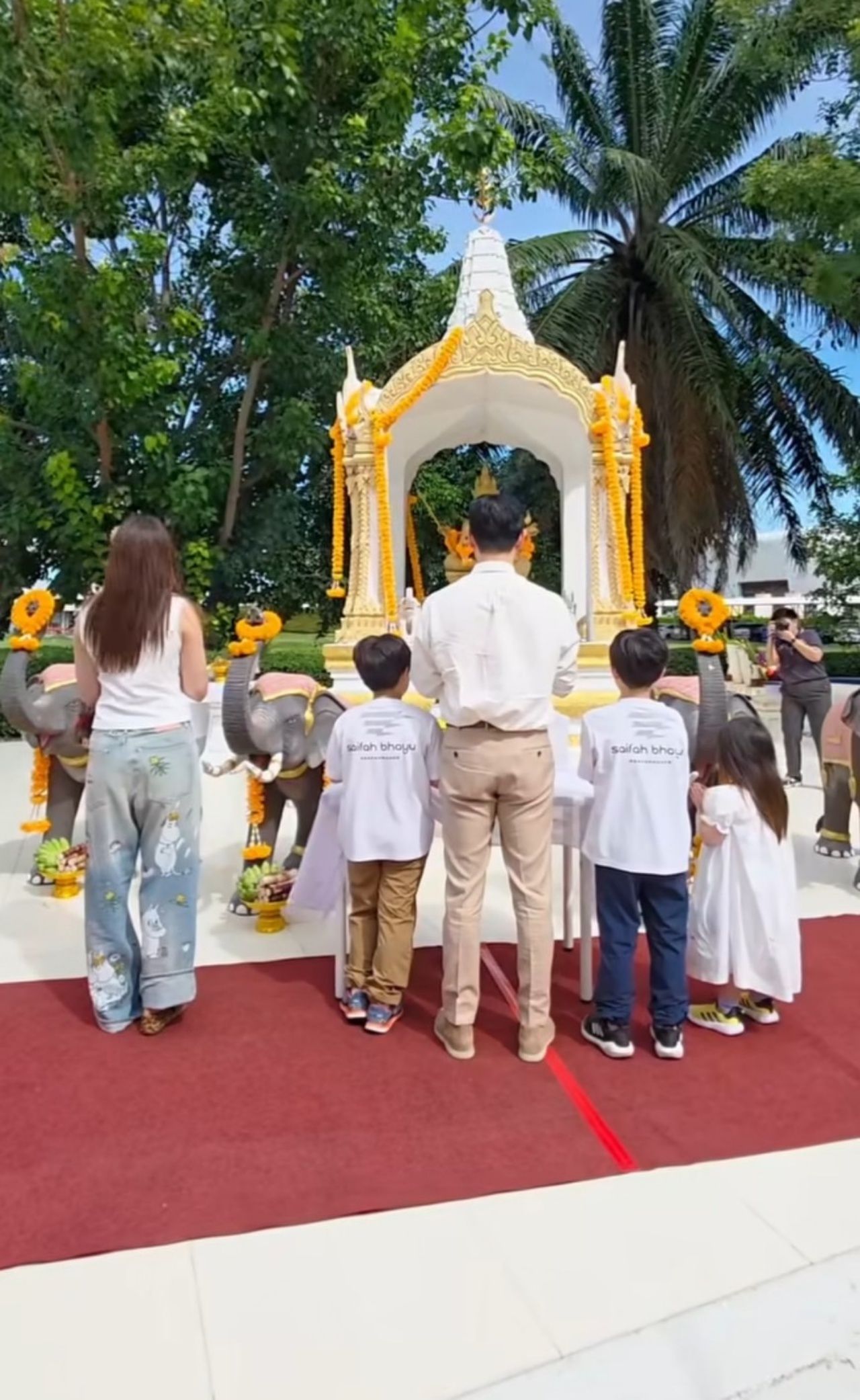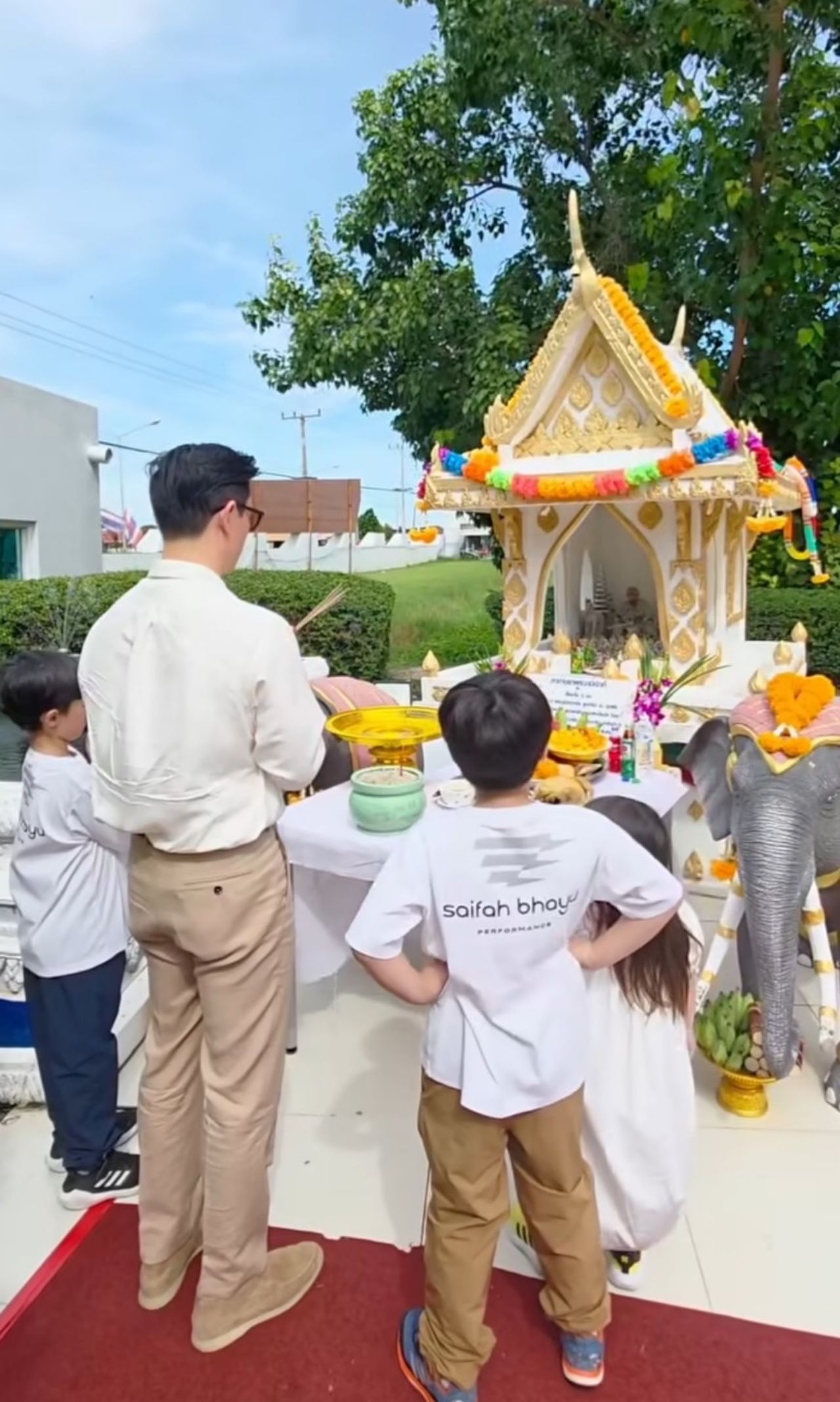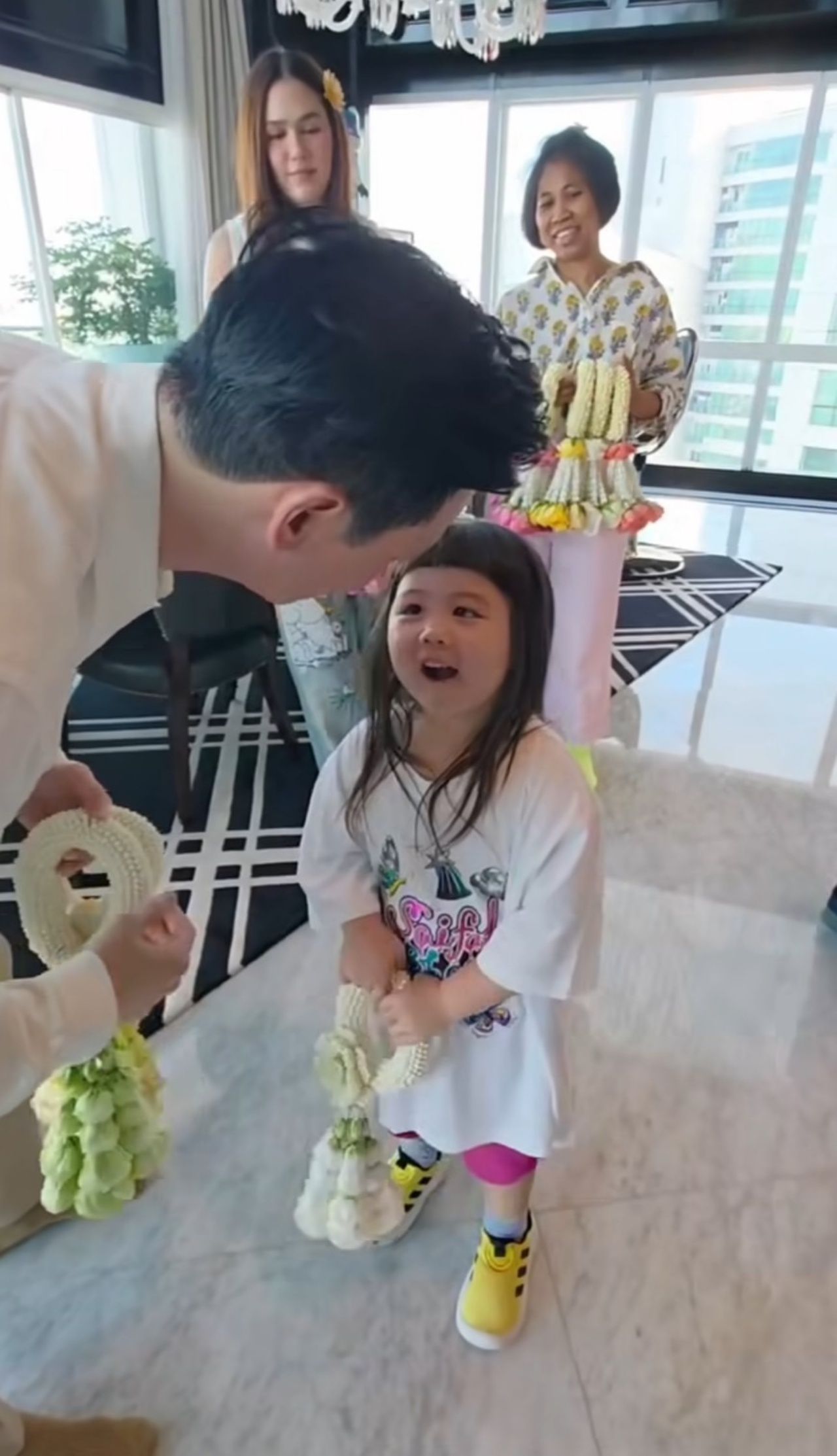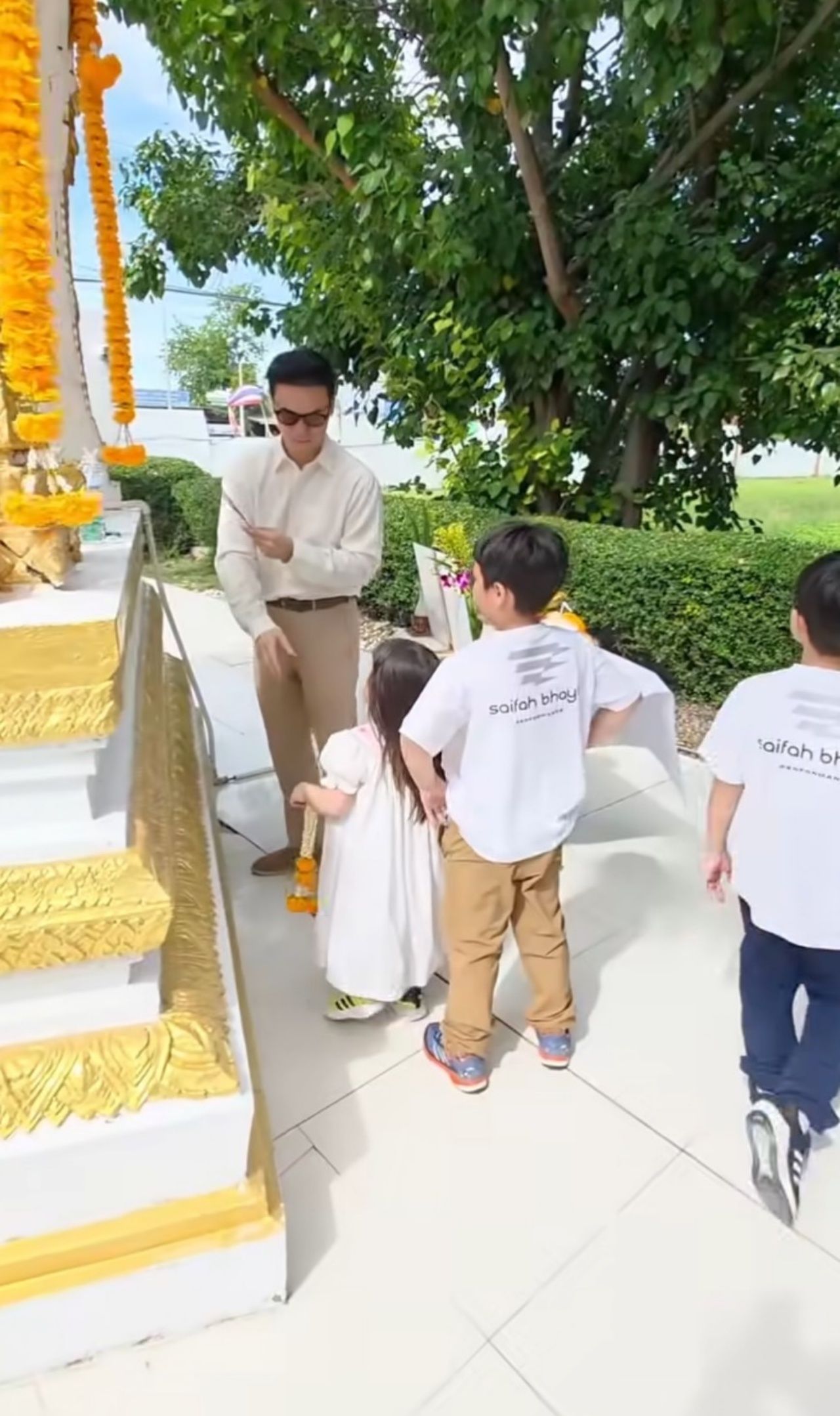 นอกจากนี้ ชมพู่ ยังได้เผยคลิปขณะที่ พ่อน็อต พาลูกๆ และครอบครัวไปที่โรงงานสายไฟฟ้า เพื่อไปทำบุญวันเกิดร่วมกับลูกน้องในโรงงาน
