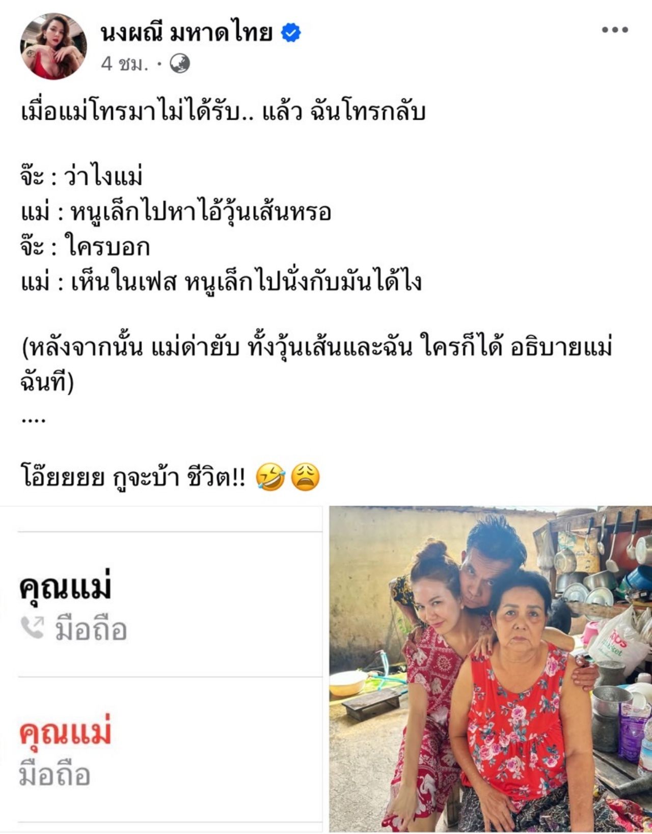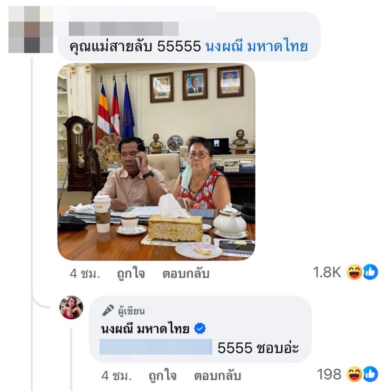 ล่าสุด จ๊ะ ก็ได้โพสต์เล่าเรื่องชวนขำ หลังภาพที่นั่งอยู่ข้างๆ ฮุน เซน กลายเป็นไวรัล เมื่อแม่โทรมาหา พร้อมทั้งด่ายับหลังได้เห็นภาพนี้ บอกว่า