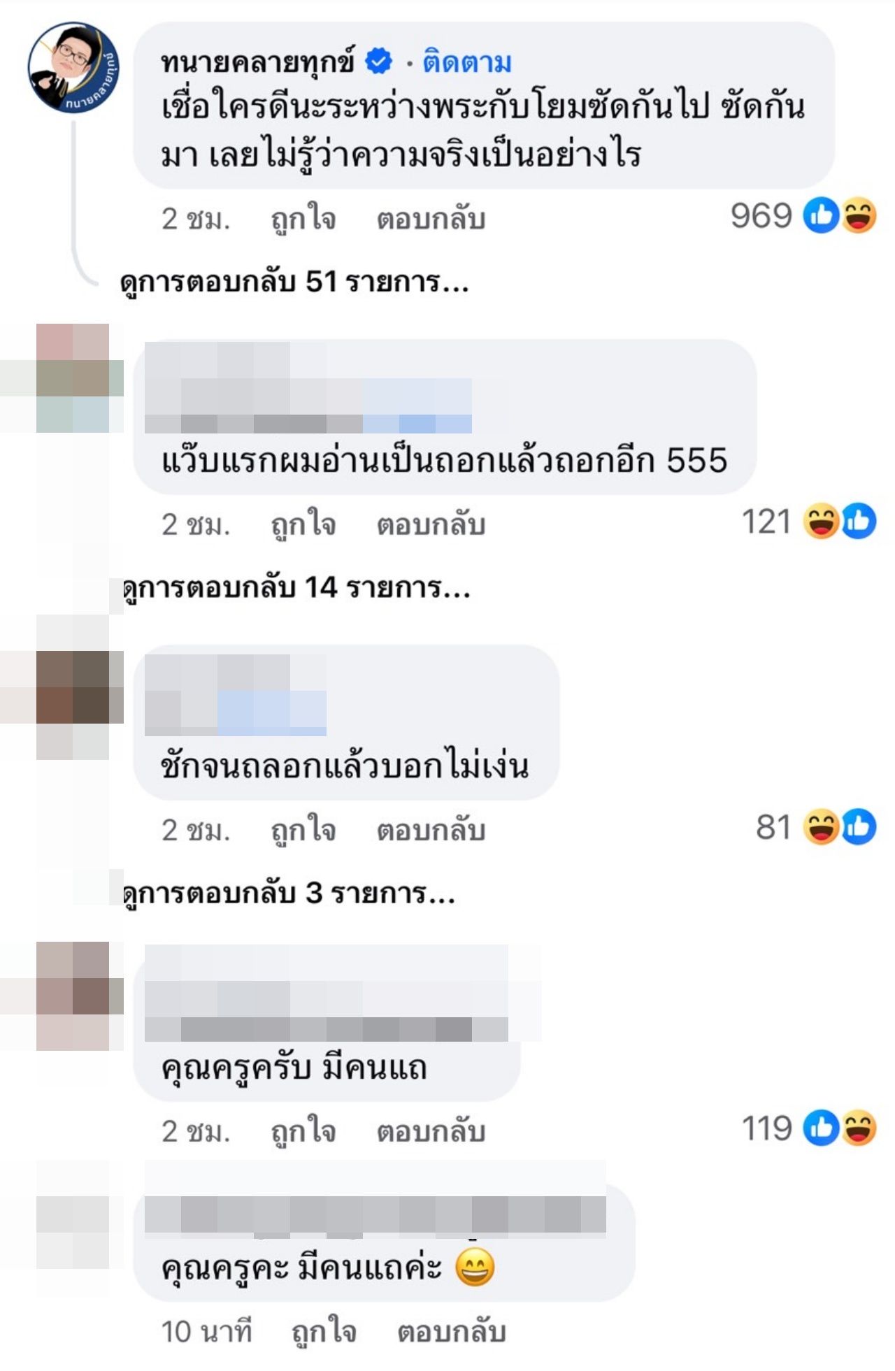 ด้าน ทนายเดชา ทนายคลายทุกข์ ก็ได้เข้ามาคอมเมนต์เช่นกันว่า "เชื่อใครดีนะระหว่างพระกับโยมซัดกันไป ซัดกันมา เลยไม่รู้ว่าความจริงเป็นอย่างไร"