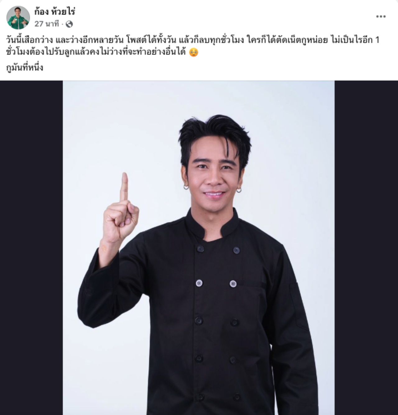 หลังจากที่ ก้อง ได้โพสต์ข้อความดังกล่าว จากนั้นไม่นานเจ้าตัวก็ได้ลบออกไป และเขียนว่า "วันนี้เ_ือกว่าง และว่างอีกหลายวัน โพสต์ได้ทั้งวัน แล้วก็ลบทุกชั่วโมง ใครก็ได้ตัดเน็ตกูหน่อย ไม่เป็นไรอีก 1 ชั่วโมงต้องไปรับลูกแล้วคงไม่ว่างที่จะทำอย่างอื่นได้ กูมันที่หนึ่ง"