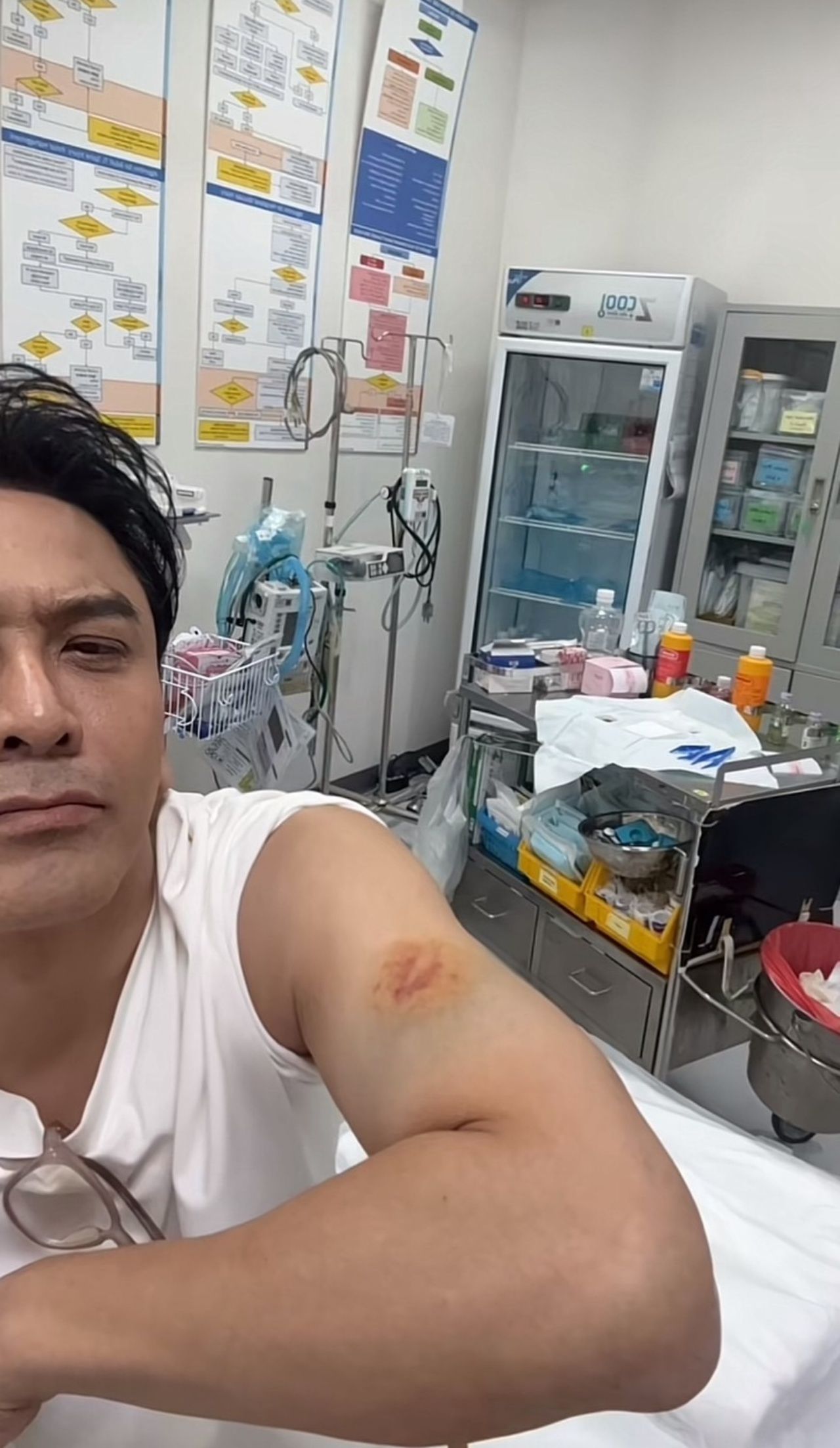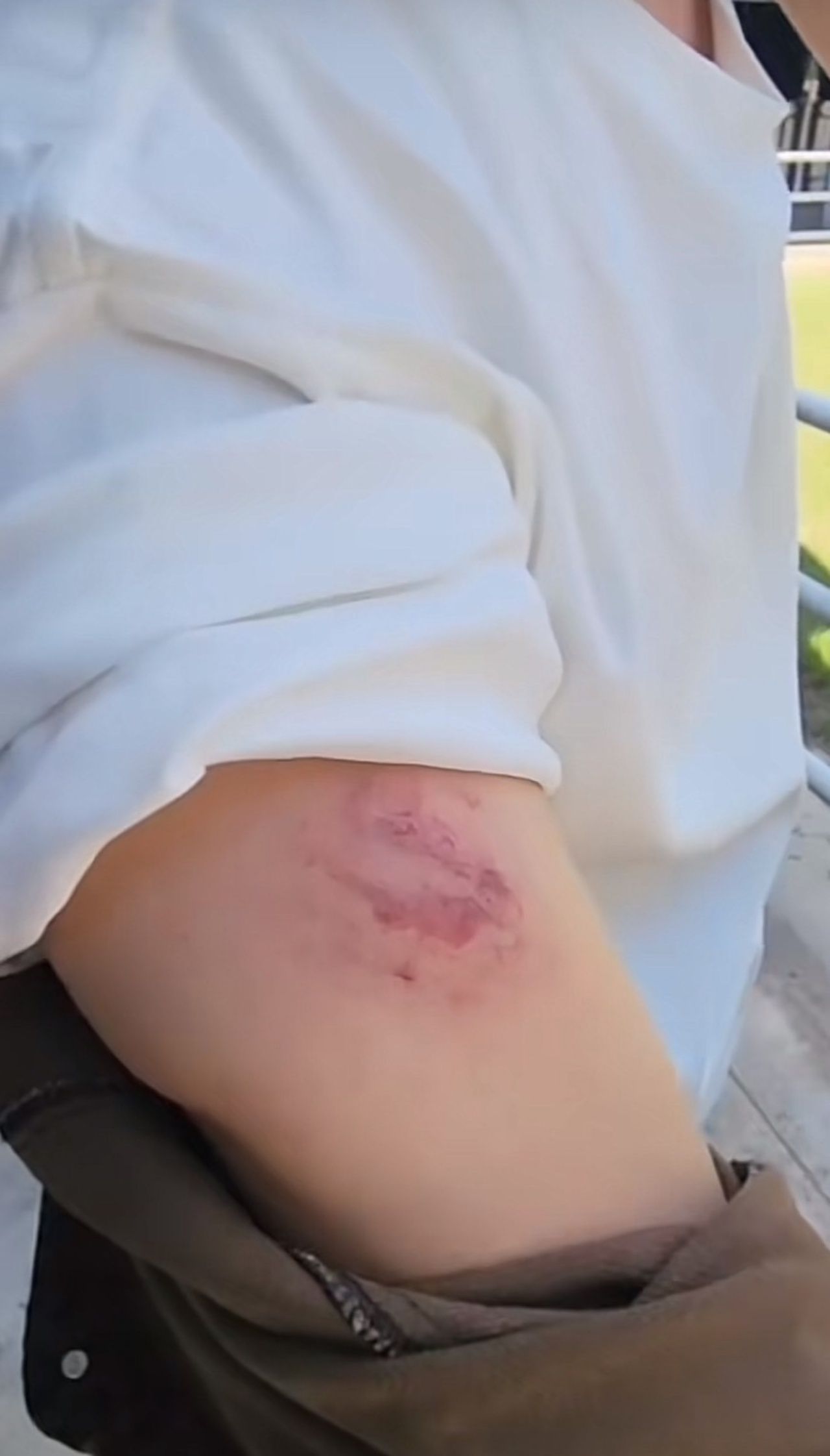 จากนั้น ป๋อ ก็ได้เผยให้เห็นแผลที่เป็นรอยฟกช้ำขนาดใหญ่ทั้งม่วงทั้งเขียว หลายคนที่เห็นคลิปดังกล่าวต่างเข้ามาคอมเมนต์แสดงความห่วงใยกันจำนวนมาก