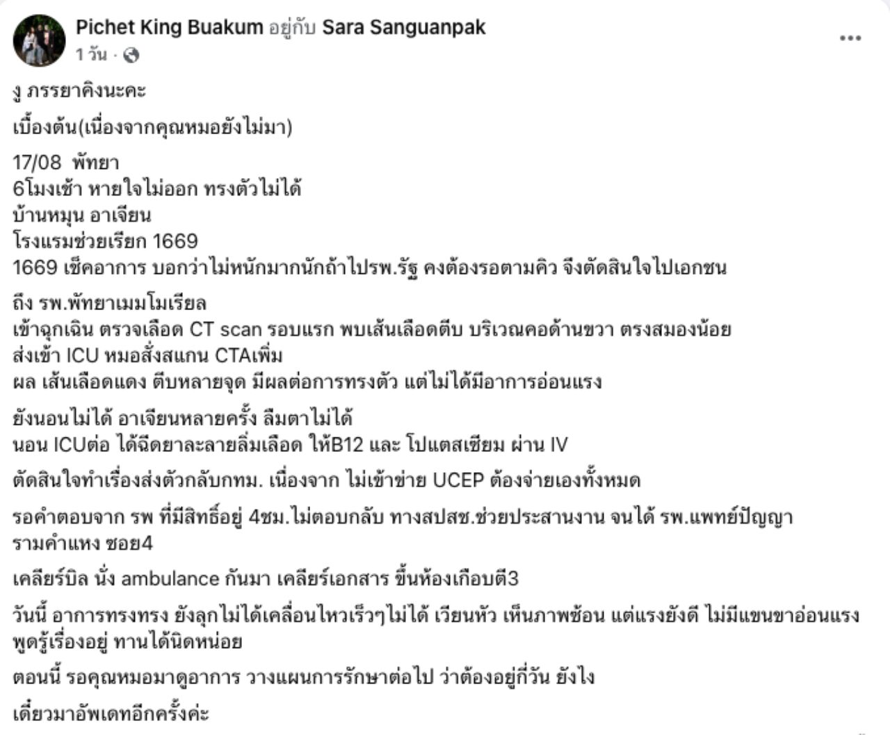 "อัพเดท 2 อาการ คิง (ภรรยา โพสต์แทนค่ะ)