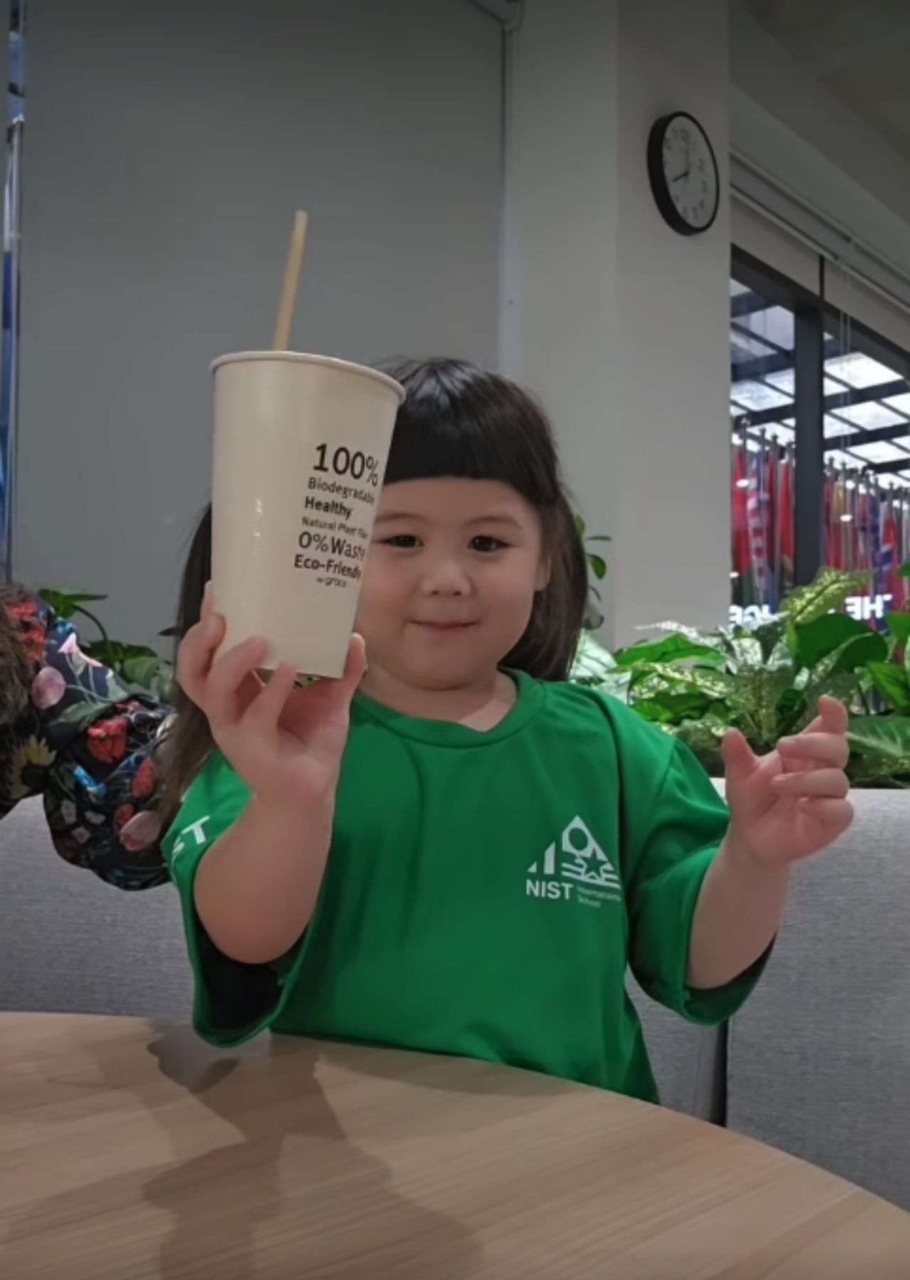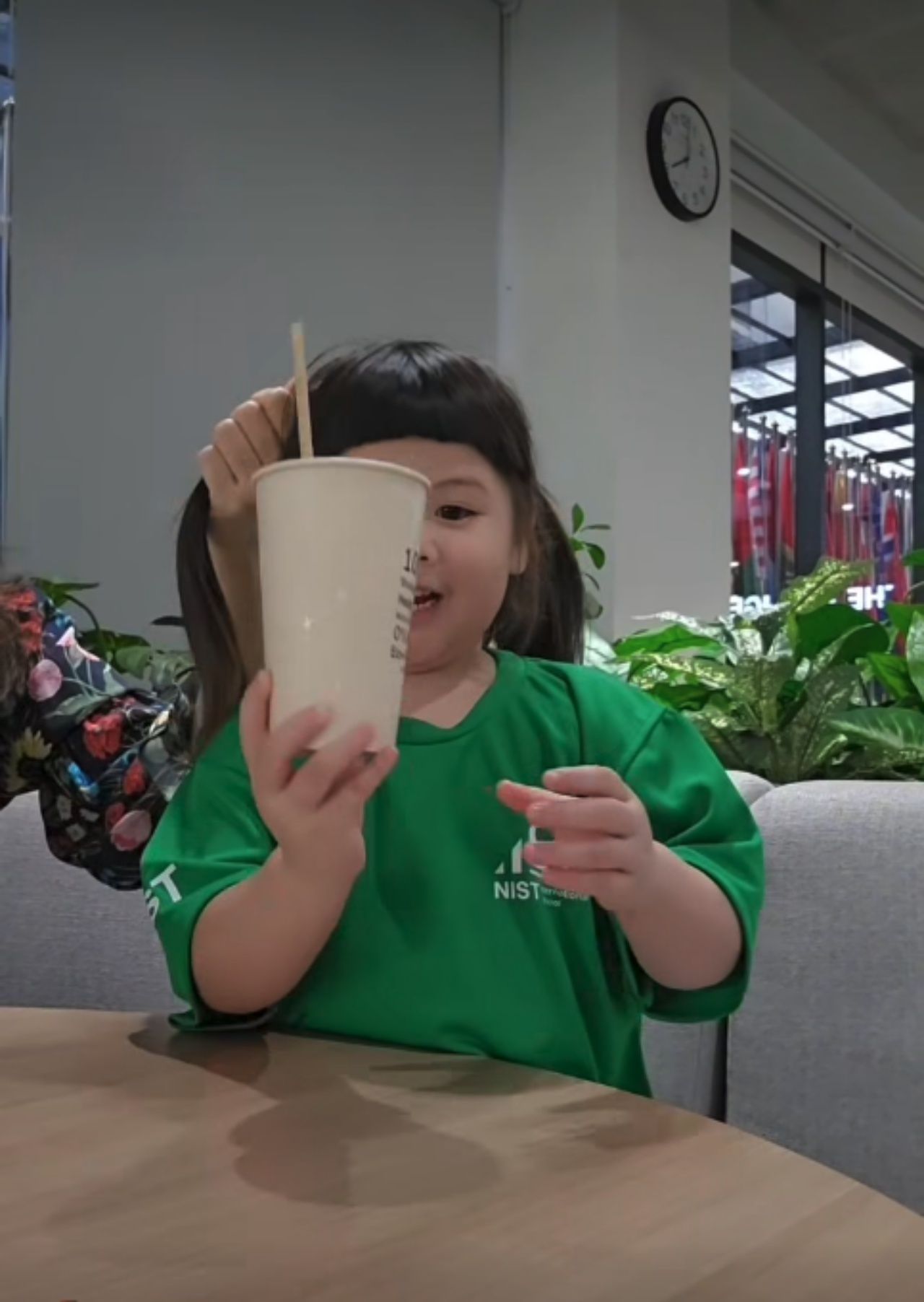 น้องเกล "เปอร์เซ็นต์ครับ (โชว์ข้อความที่แก้วน้ำ)"