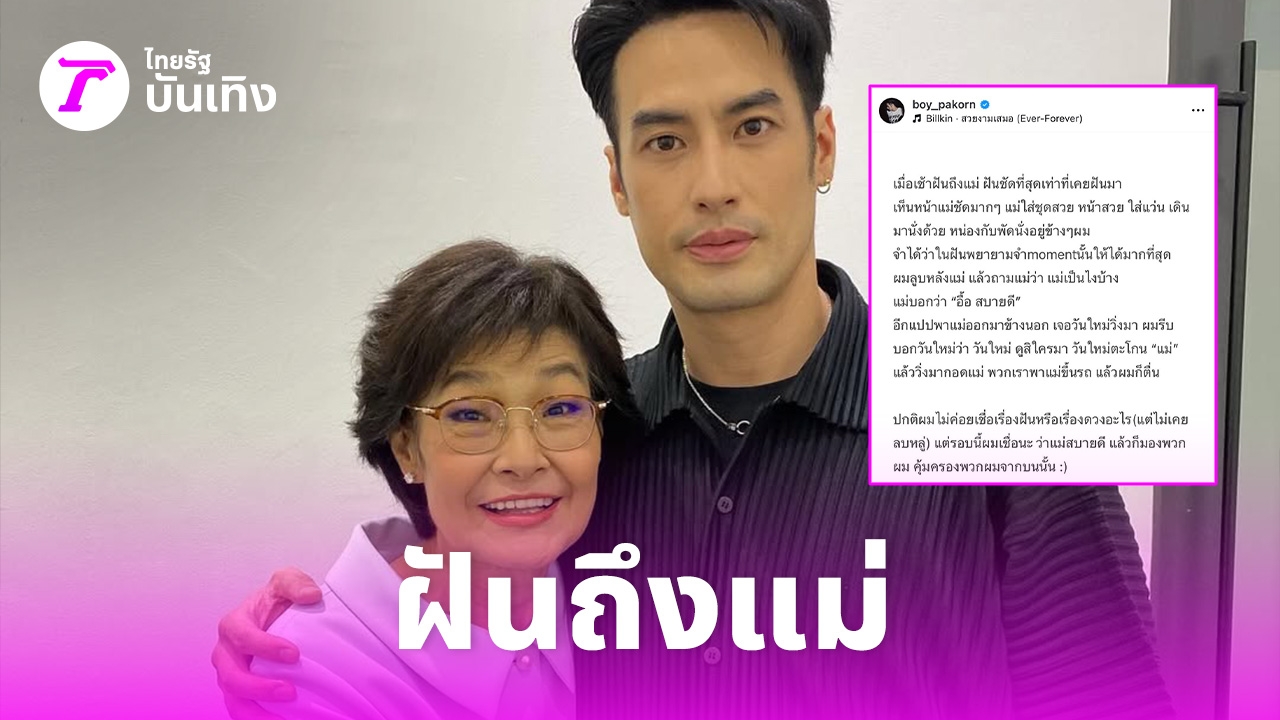 ซึ่งในอินสตาแกรม @boy_pakorn ได้โพสต์ภาพข้อความเล่าตอนที่ฝันถึงคุณแม่ โดยบอกว่า “เมื่อเช้าฝันถึงแม่ ฝันชัดที่สุดเท่าที่เคยฝันมา เห็นหน้าแม่ชัดมากๆ แม่ใส่ชุดสวย หน้าสวย ใส่แว่น เดิน มานั่งด้วย หน่องกับพัดนั่งอยู่ข้างๆ ผม