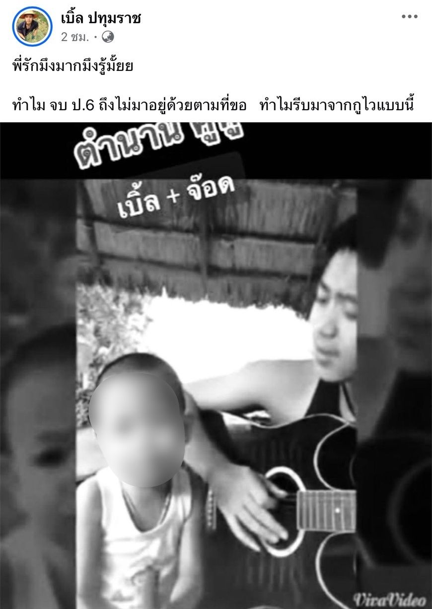แต่หลังจากนั้น เบิ้ล ปทุมราช ก็โพสต์แจ้งข่าวเศร้า โพสต์ภาพตัวเองร้องไห้หน้าเศร้า และเขียนข้อความว่า “น้องผม ไม่อยู่กับผมแล้วครับ” และโพสต์ภาพกับน้องจ๊อดพร้อมทั้งเขียนแคปชั่น “พี่รักมึงมากมึงรู้มั้ยย ทำไม จบ ป.6 ถึงไม่มาอยู่ด้วยตามที่ขอ ทำไมรีบมาจากกูไวแบบนี้”