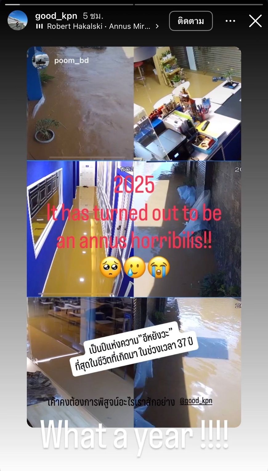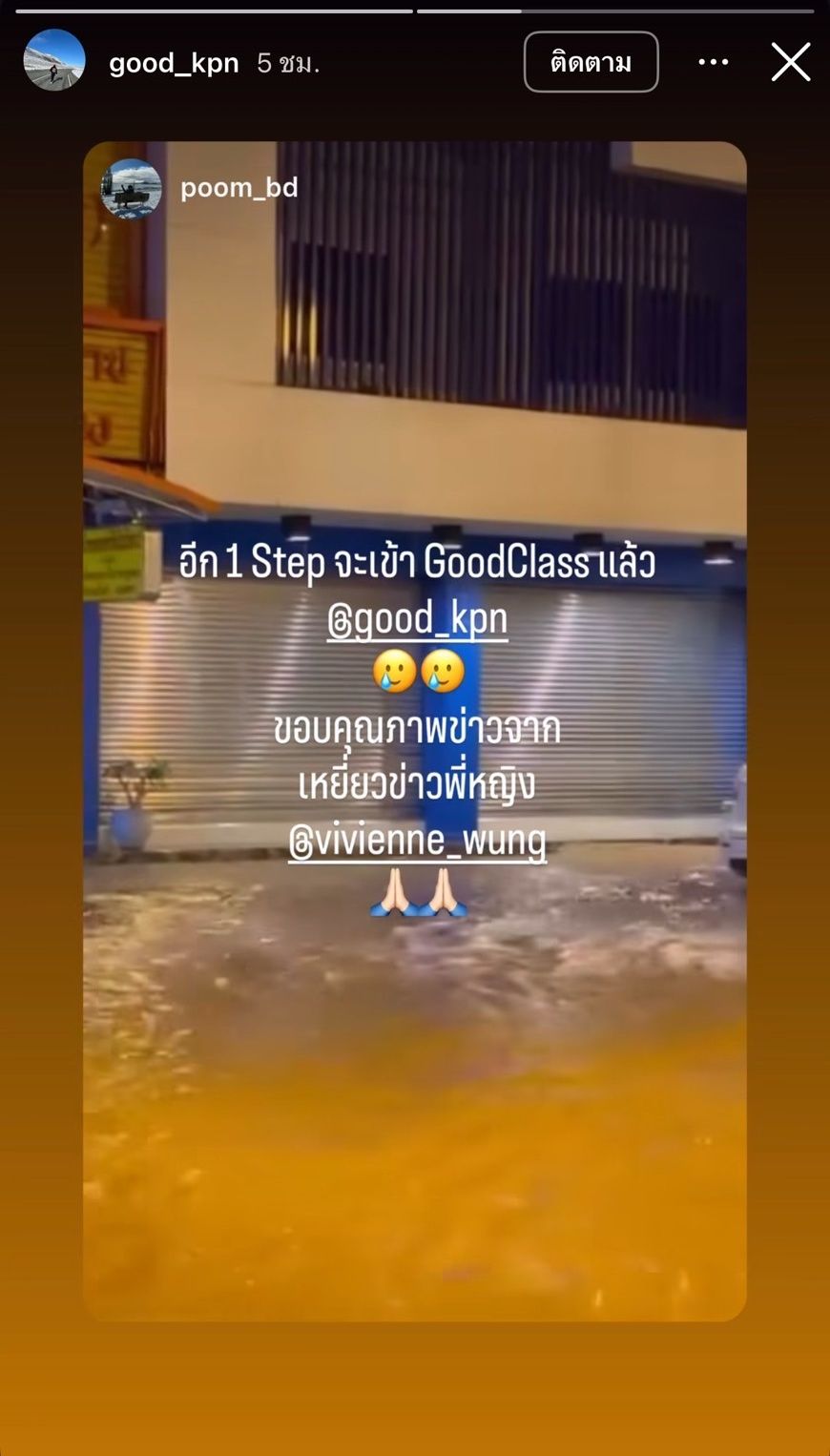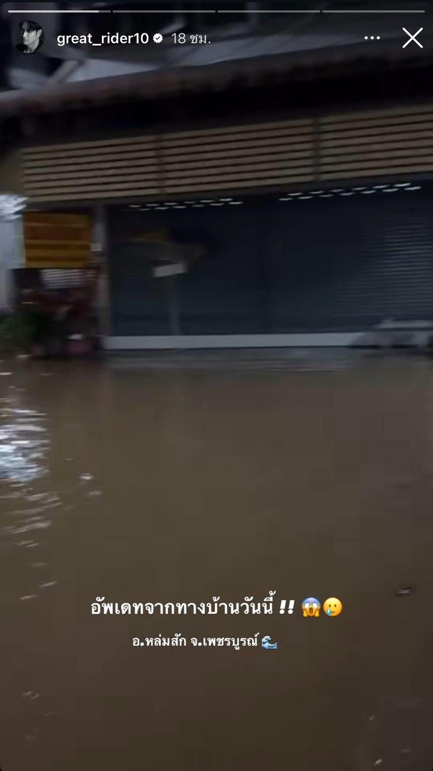 โดยในไอจีสตอรี่ @great_rider10 ของ เกรท วรินทร ก็ได้โพสต์คลิปน้ำท่วม และเขียนข้อความ “อัปเดตจากทางบ้านวันนี้!! อ.หล่มสัก จ.เพชรบูรณ์” ในขณะที่ไอจีสตอรี่ @good_kpn ของ กู๊ด KPN น้องชายของเกรท ก็โพสต์ภาพสถานการณ์น้ำท่วมเช่นกัน