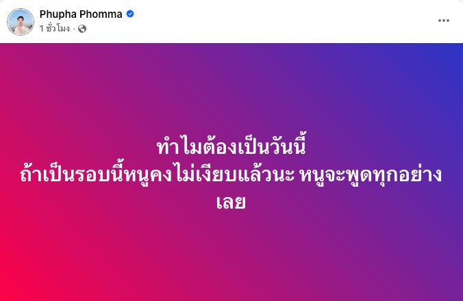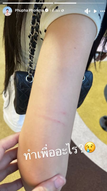 "ทำไมต้องเป็นวันนี้ ถ้าเป็นรอบนี้หนูคงไม่เงียบแล้วนะ หนูจะพูดทุกอย่างเลย" พร้อมกับลงรูปรอยแผลที่แขนผู้หญิงลงในสตอรี่ พร้อมเขียนข้อความว่า "ทำเพื่ออะไร?" พร้อมอีโมจิร้องไห้